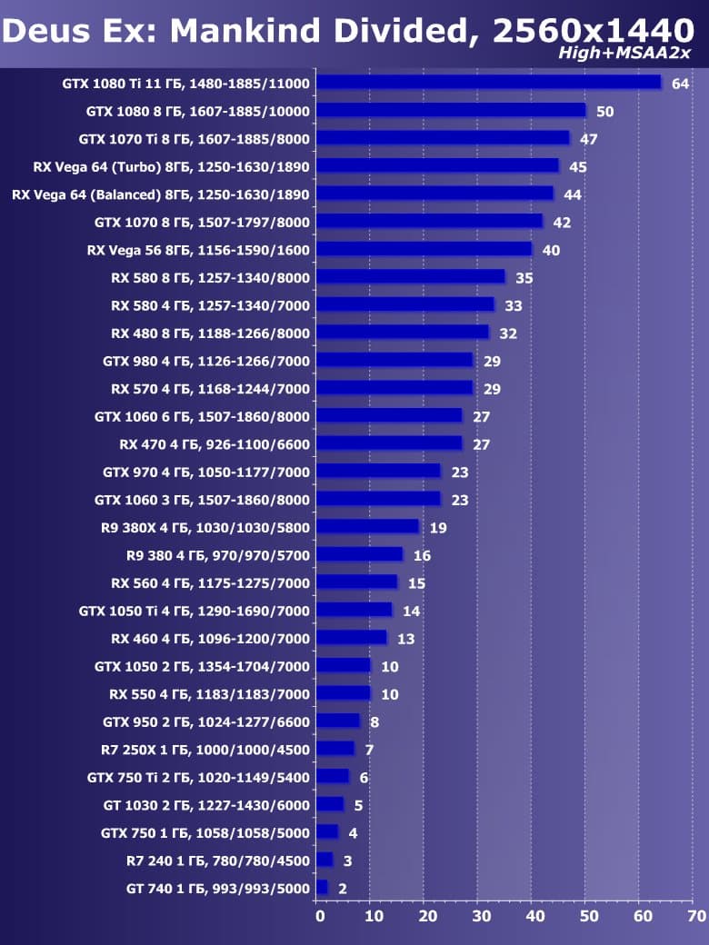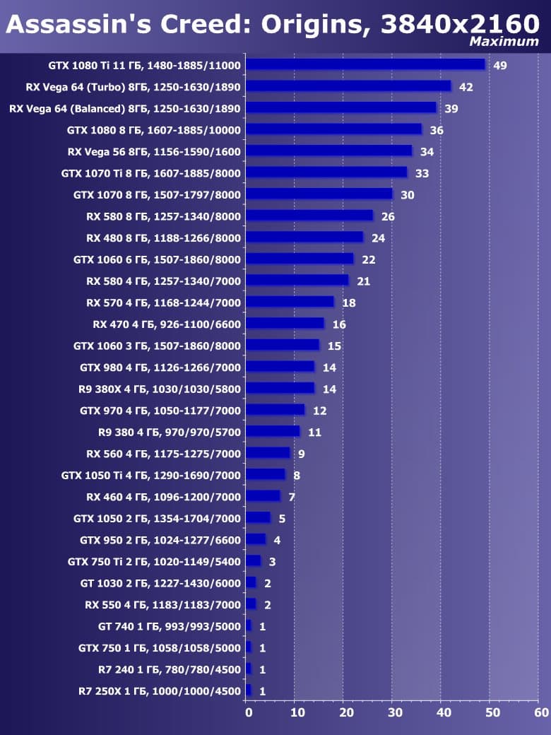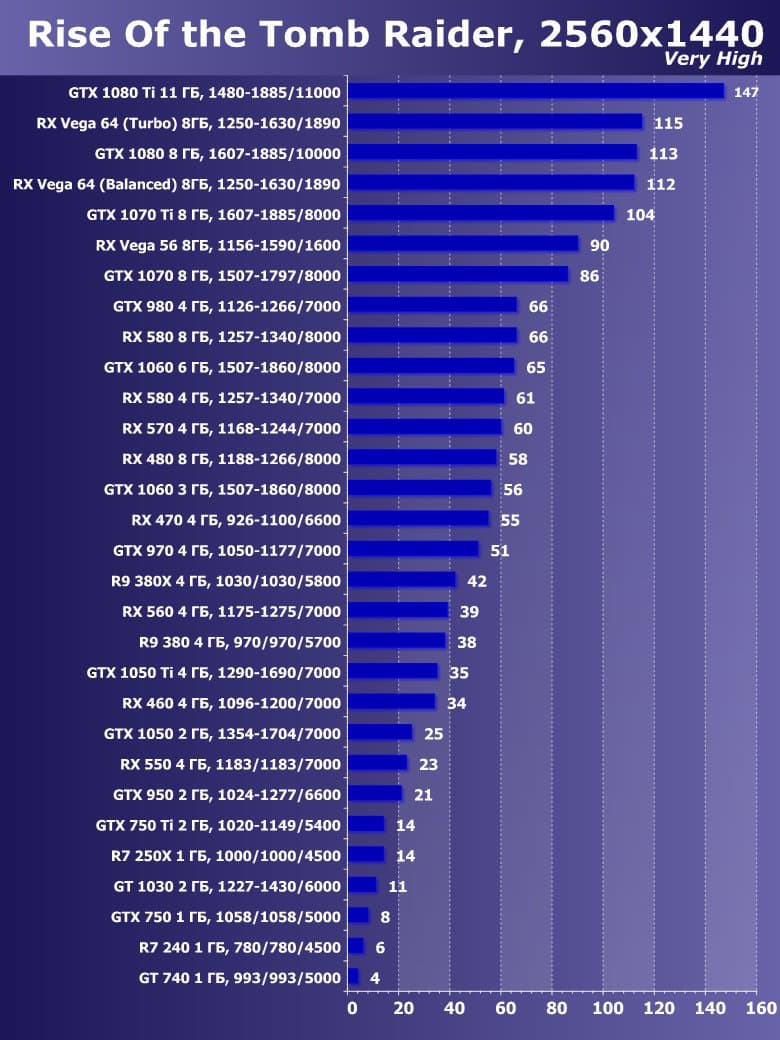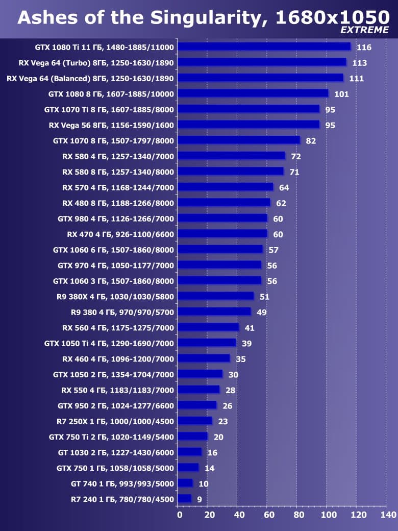 | 21 | RX 460 4 ГБ, 1096—1200/7000 | 720 | 828 | 8700 |