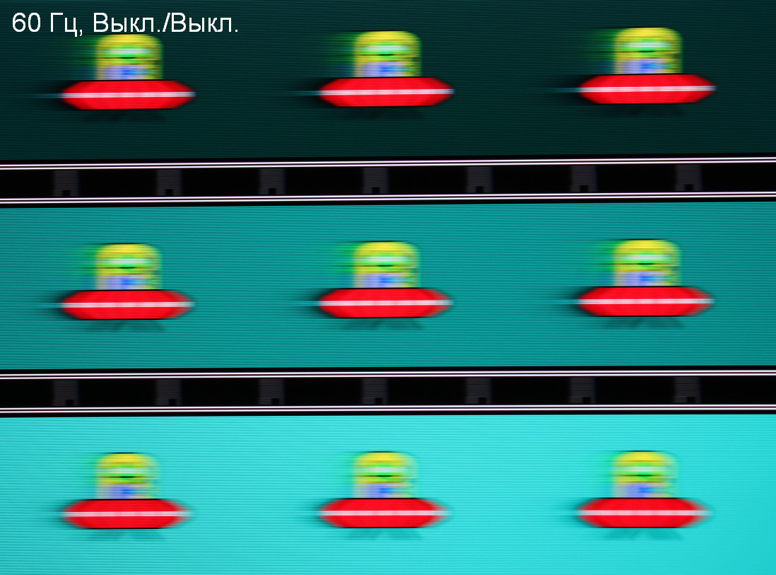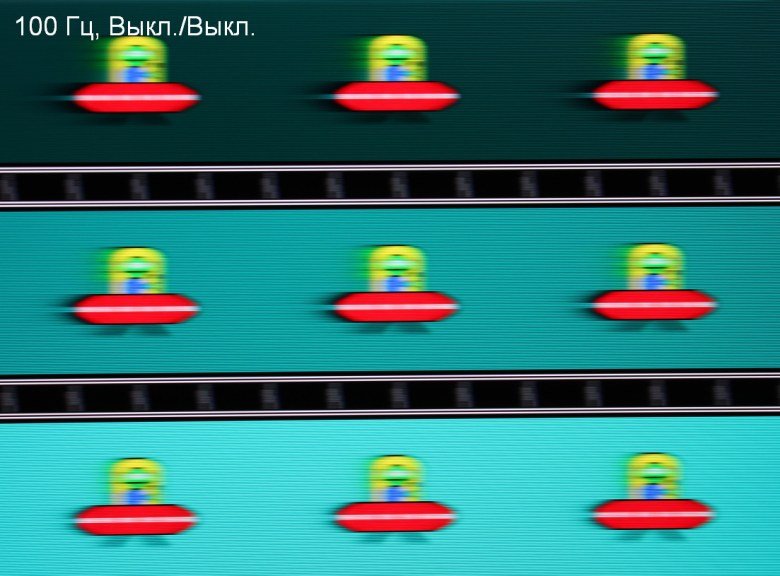 Видно, что при прочих равных условиях четкость изображения повышается по мере роста частоты обновления и степени разгона, но на сильном разгоне артефакты уже заметные. Включение MBR увеличивает четкость, но объекты в движении троятся, что снижает положительный эффект.