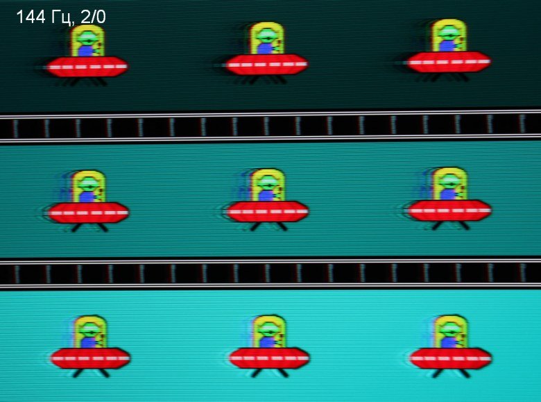 Четкость в движении действительно повышается (и производитель может указывать невероятные 1 мс с оговоркой, что это характеристика четкости в движении — MPRT), но на динамичной картинке появляются артефакты, о чем будет рассказано ниже, а из-за мерцания с частотой максимум в 144 Гц данный режим рекомендуется использовать с осторожностью, так как мерцание может приводить к повышенной утомляемости глаз. Также отметим, что по мере увеличения значения MBR длительность темного промежутка увеличивается, что приводит с снижению яркости изображения.