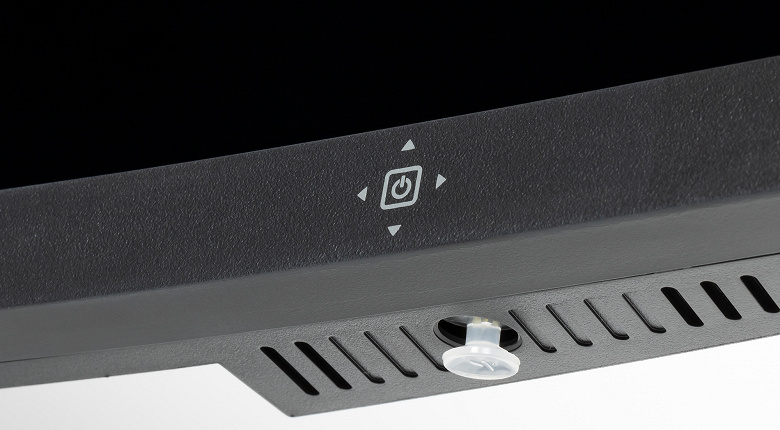 Справа внизу на фронтальной планке светло-серым цветом нанесена метка, указывающая на расположение джойстика. Сам небольшой пятипозиционный (отклонение по четырем направлениям и нажатие) джойстик, выполненный из матового полупрозрачного пластика, расположен на нижнем торце блока монитора. Индикатор состояния подсвечивает джойстик изнутри. Спереди свет индикатора при типичном расположении пользователя не видно.