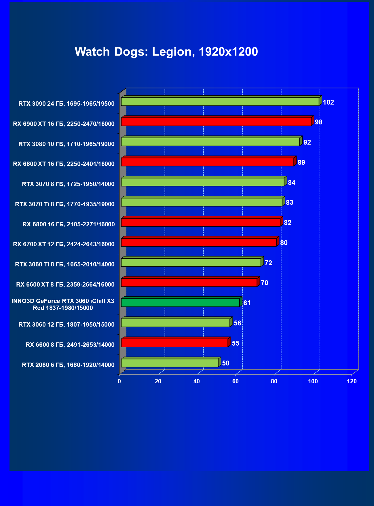 | 09 | Inno3D GeForce RTX 3060 iChill X3 Red, 1837—1980/15000 | 140 | 17 | 84 000 |