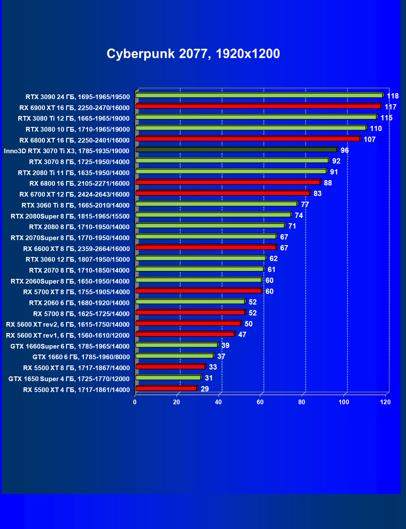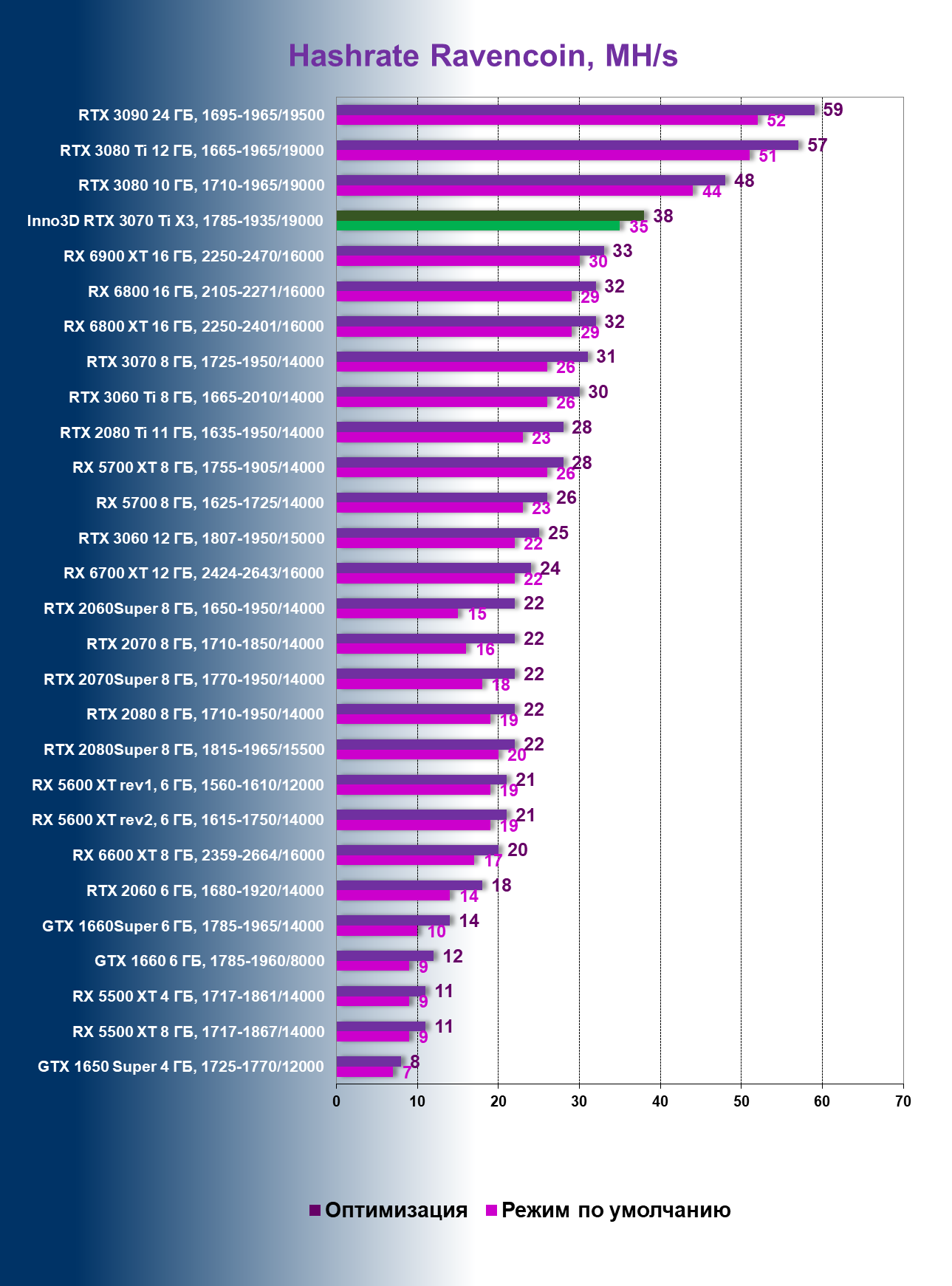 | 01 | Inno3D RTX 3070 Ti X3, 1785—1935/19000 | 22 | 228 | 103 000 |
