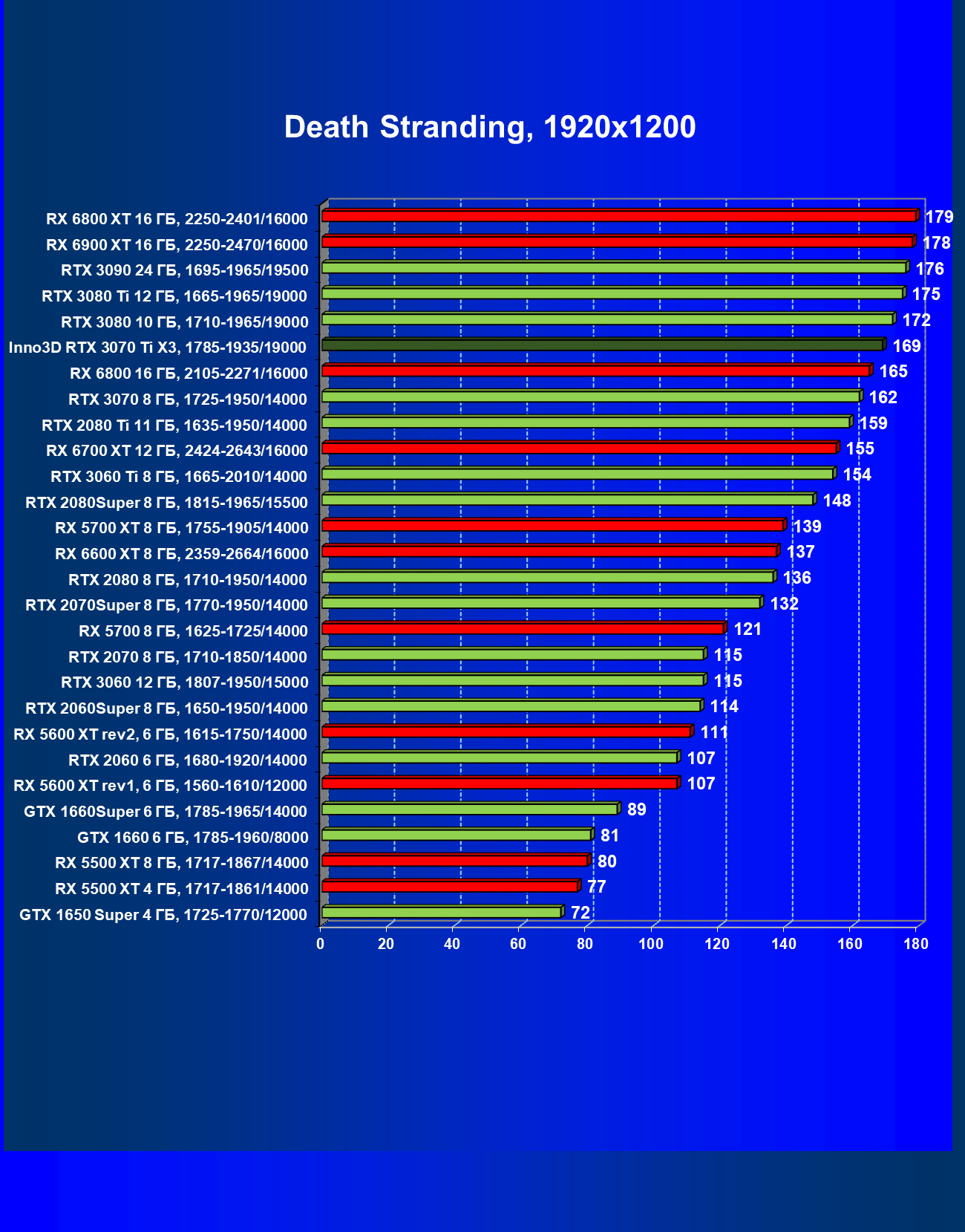 | 10 | RX 6800 16 ГБ, 1815—2271/16000 | 180 | 14 | 130 000 |