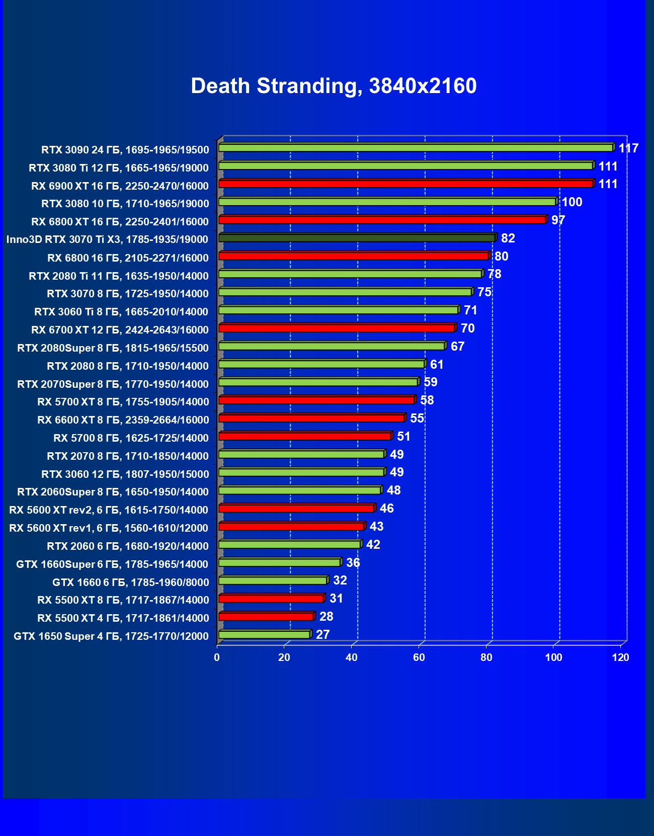 | 07 | Inno3D RTX 3070 Ti X3, 1785—1935/19000 | 41 | 420 | 103 000 |