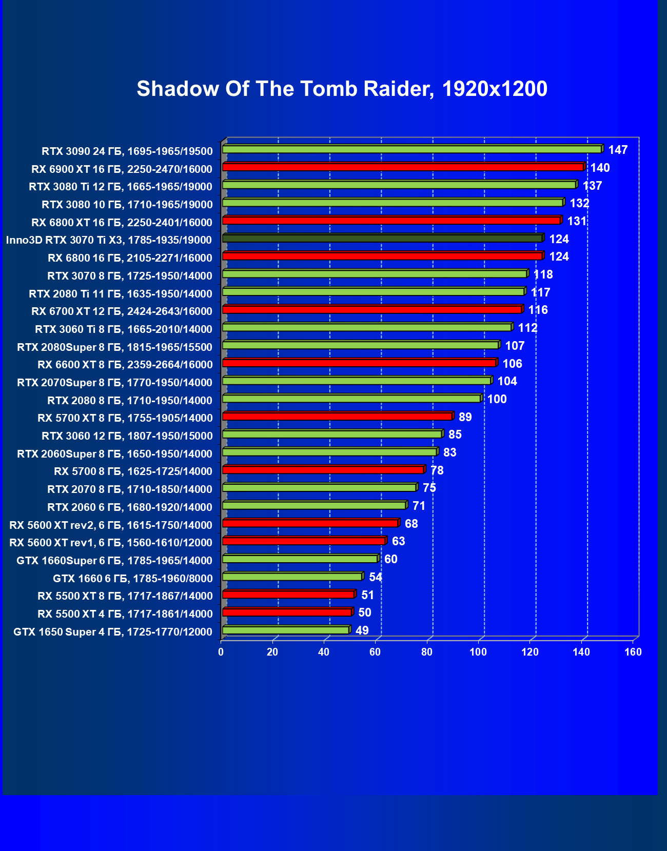 | 19 | RX 6800 16 ГБ, 1815—2271/16000 | 13 | 168 | 130 000 |