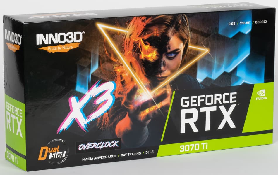 Inno3D GeForce RTX 3070 Ti X3 OC (8 ГБ) — достаточно простая и добротная реализация предфлагманского игрового ускорителя. Это карта без наворотов — для тех, кого не интересует внешний вид компьютерных компонентов. Но при этом потенциально она может иметь более низкую цену.