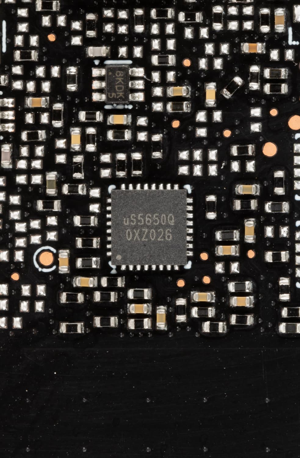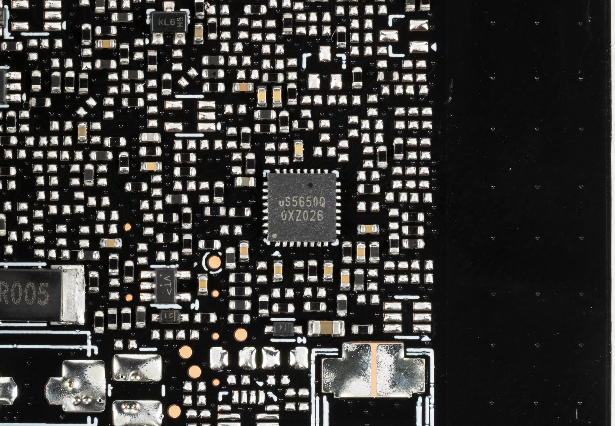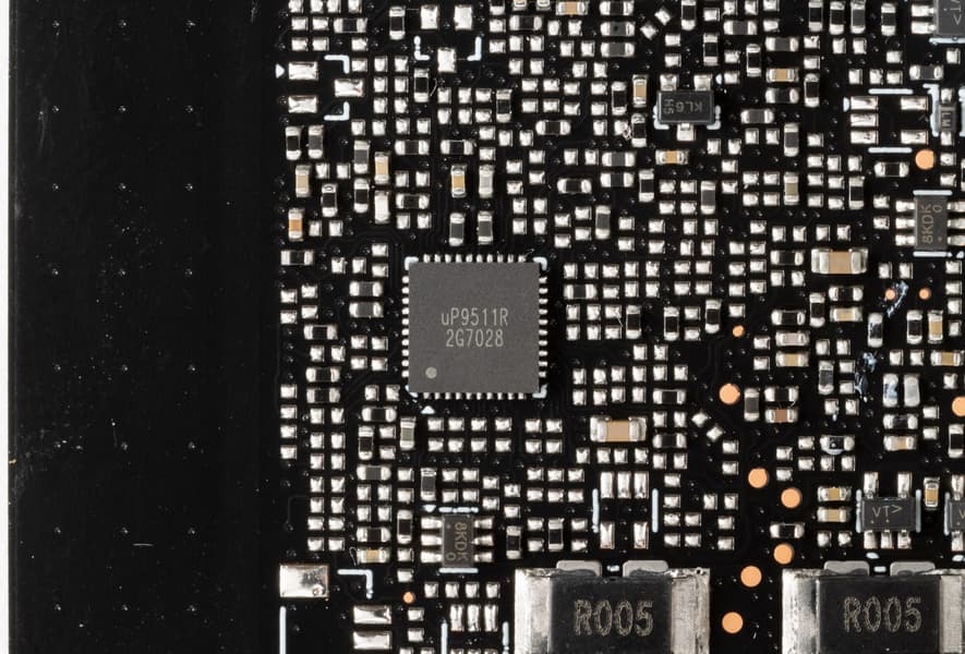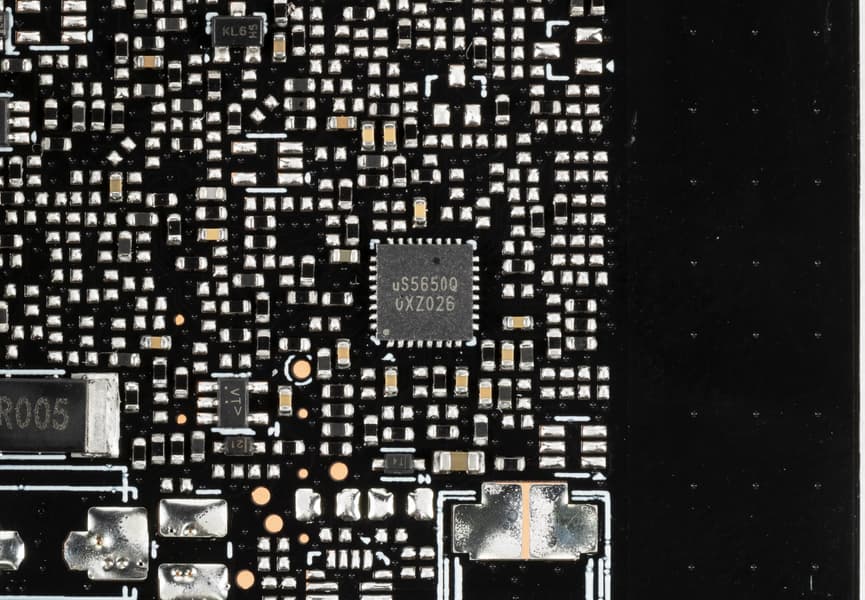 Также имеются два контроллера uS5650Q (uPI Semiconductor), отвечающие за мониторинг (отслеживание напряжений и температуры) и расположенные на разных сторонах PCB.