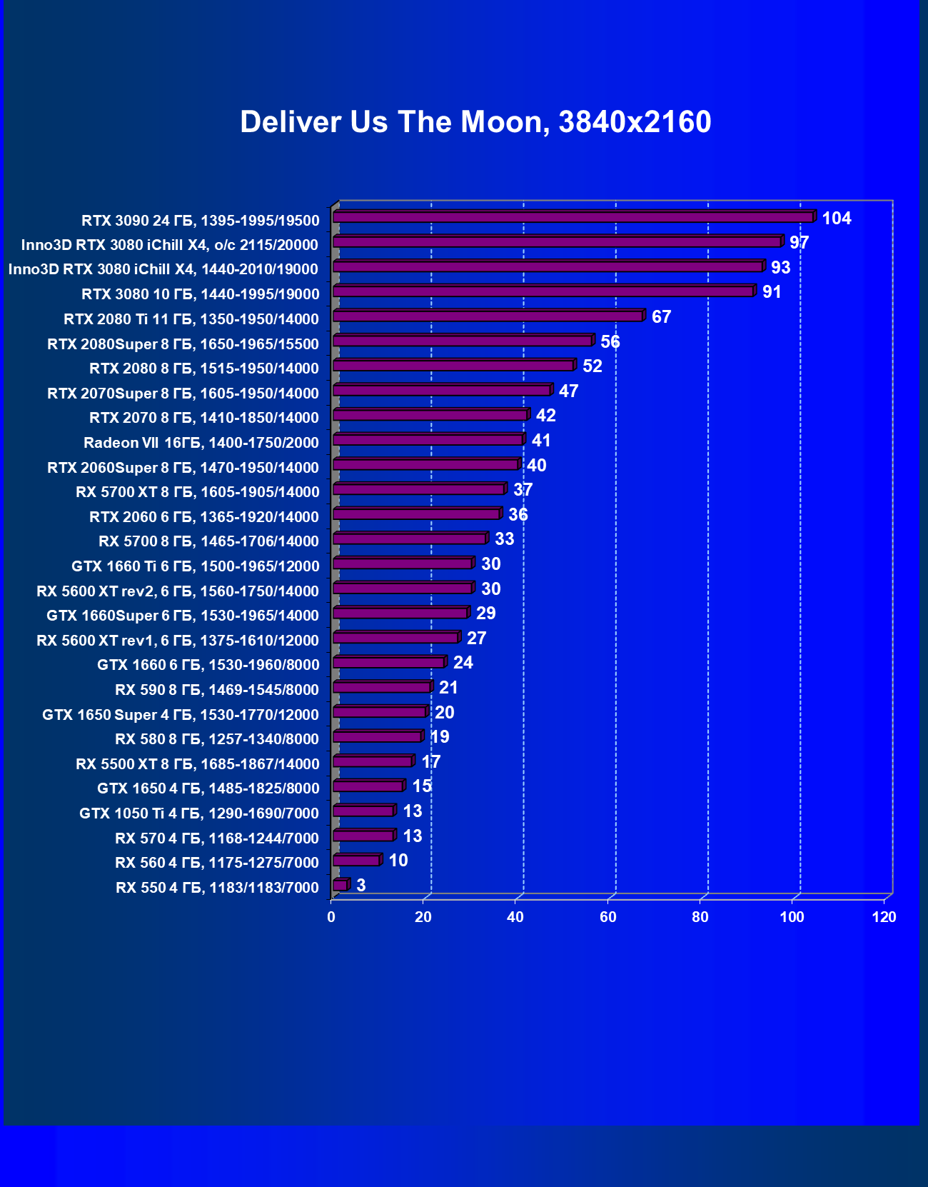 | 04 | Inno3D RTX 3080 iChill X4, 1440—2010/19000 | 578 | 4049 | 70 000 |