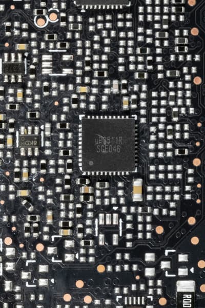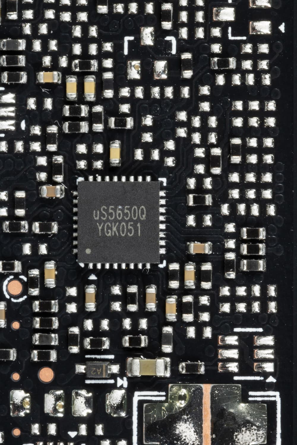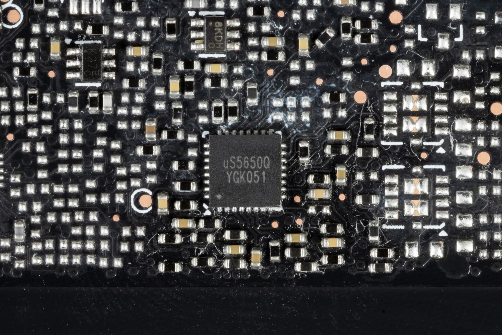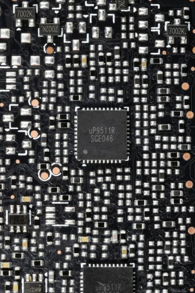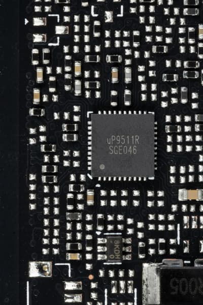 C обеих сторон установлено по одному контроллеру uS5650Q (uPI Semiconductor), которые отвечают за мониторинг карты (отслеживание напряжений и температуры).