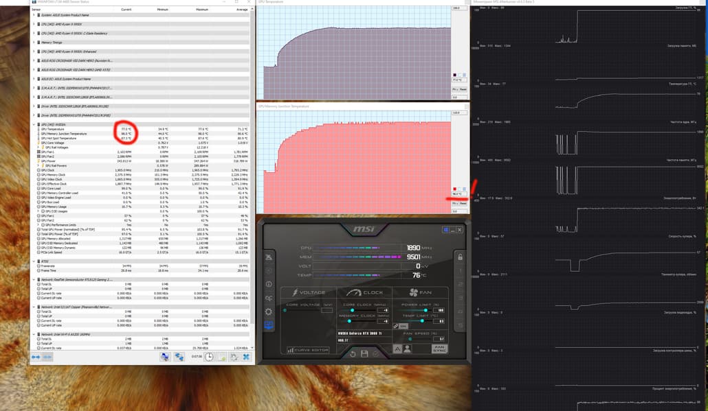 Мониторинг температурного режима с помощью MSI Afterburner :