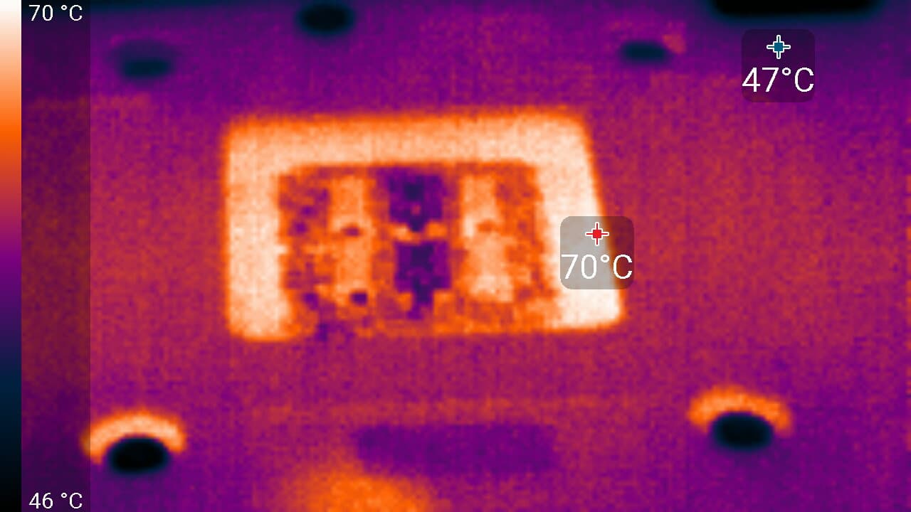 Максимальный нагрев наблюдался в центральной части PCB, в основном около ядра.