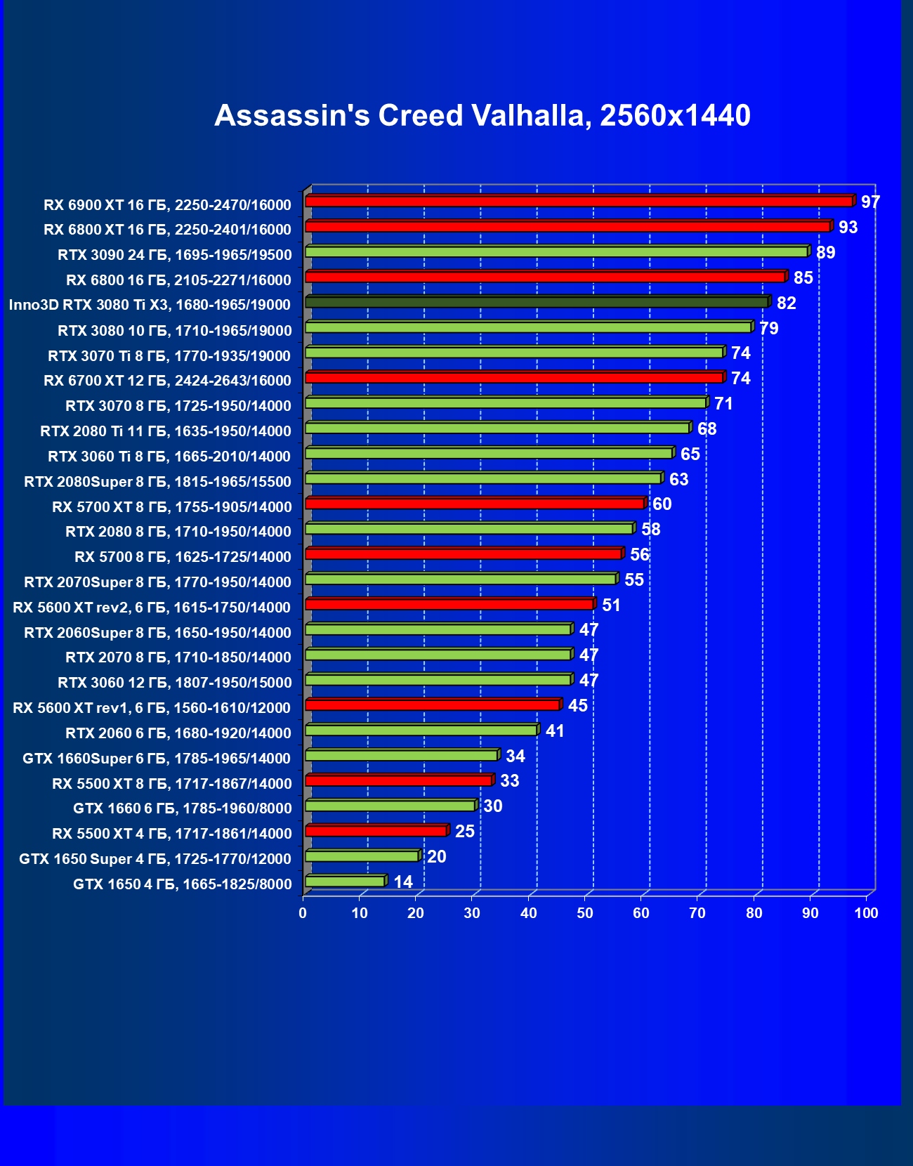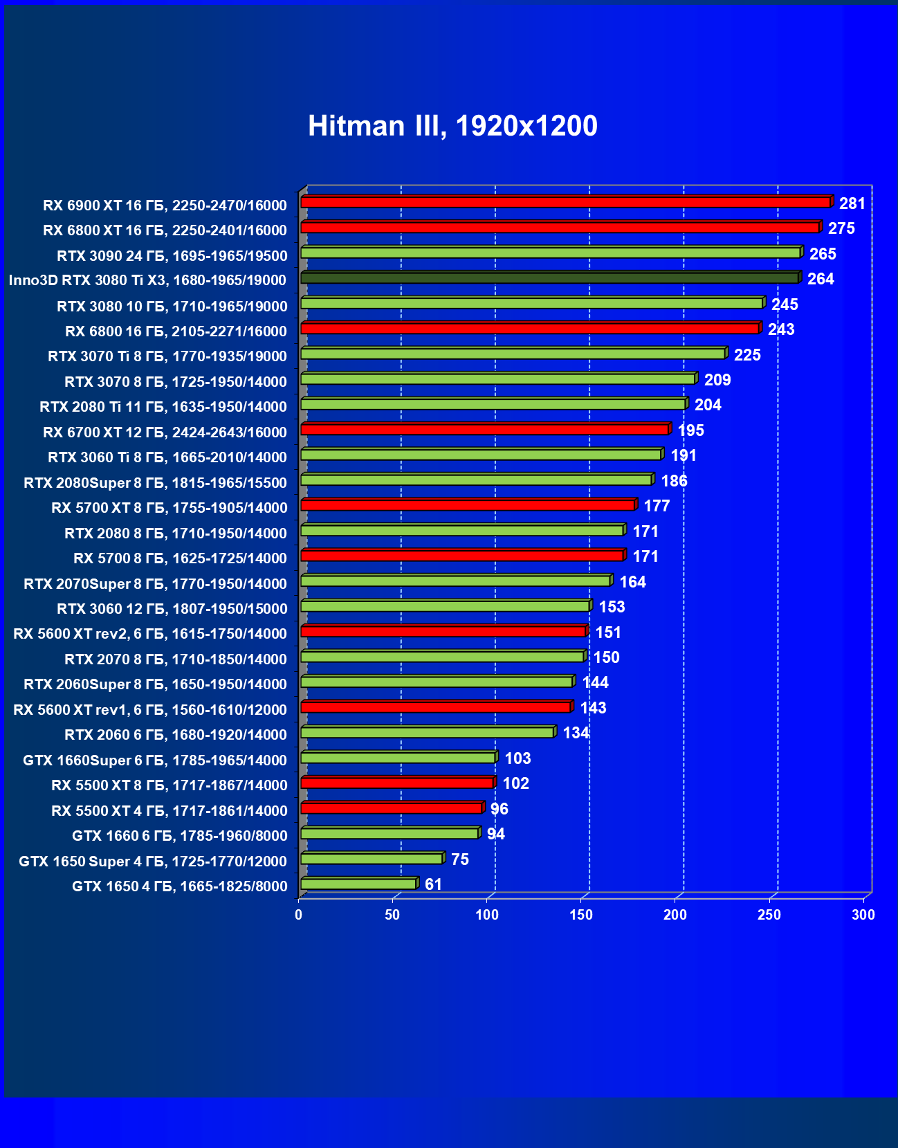| 13 | RX 6900 XT 16 ГБ, 2015—2470/16000 | 21 | 285 | 134 000 |