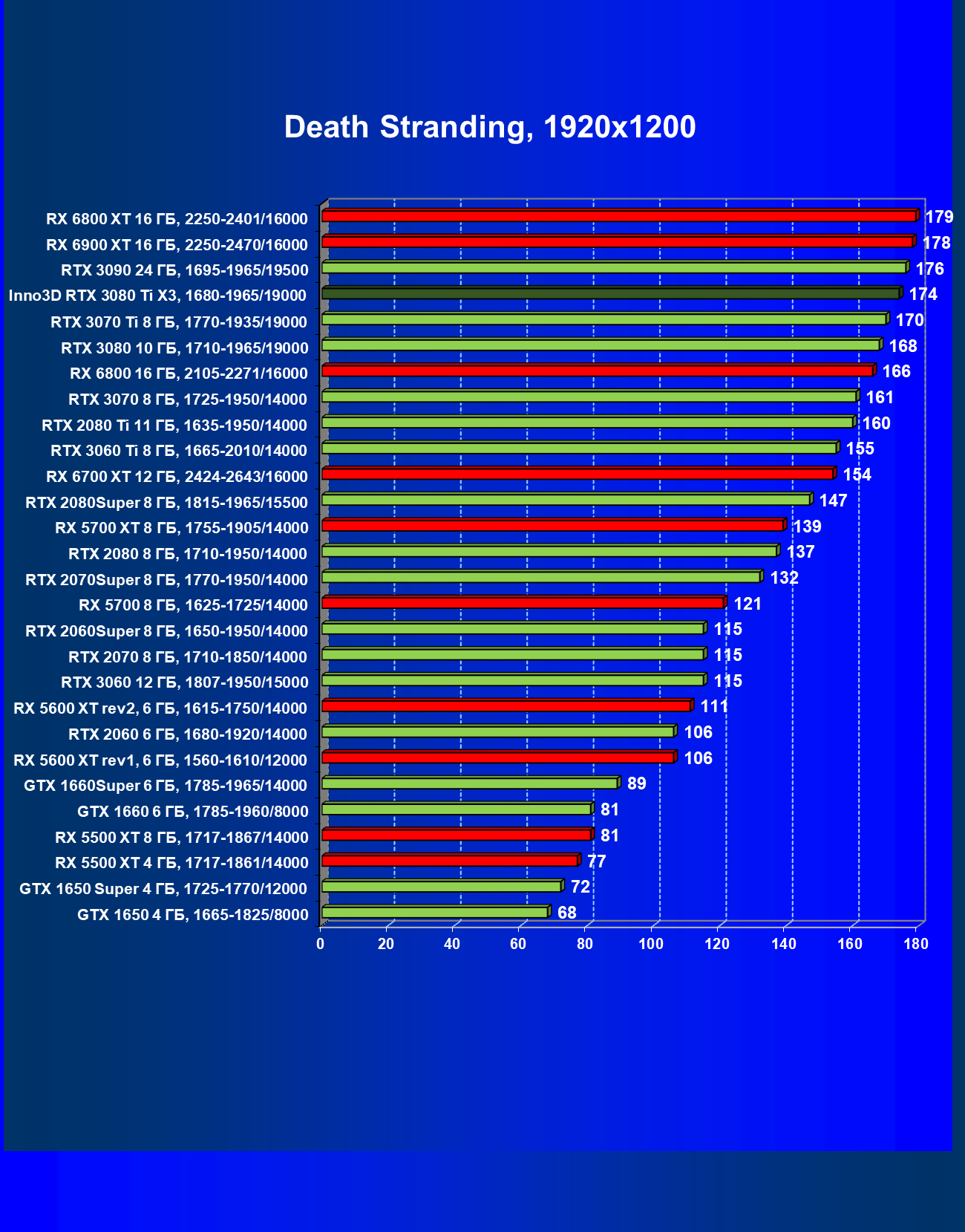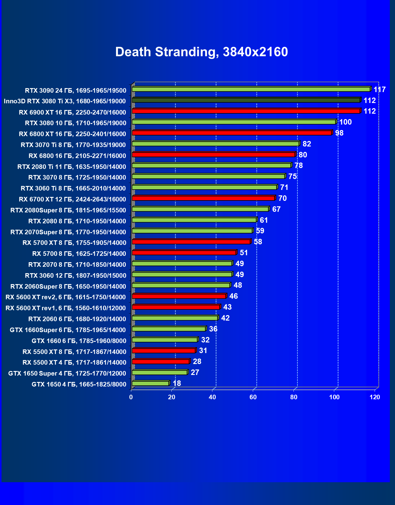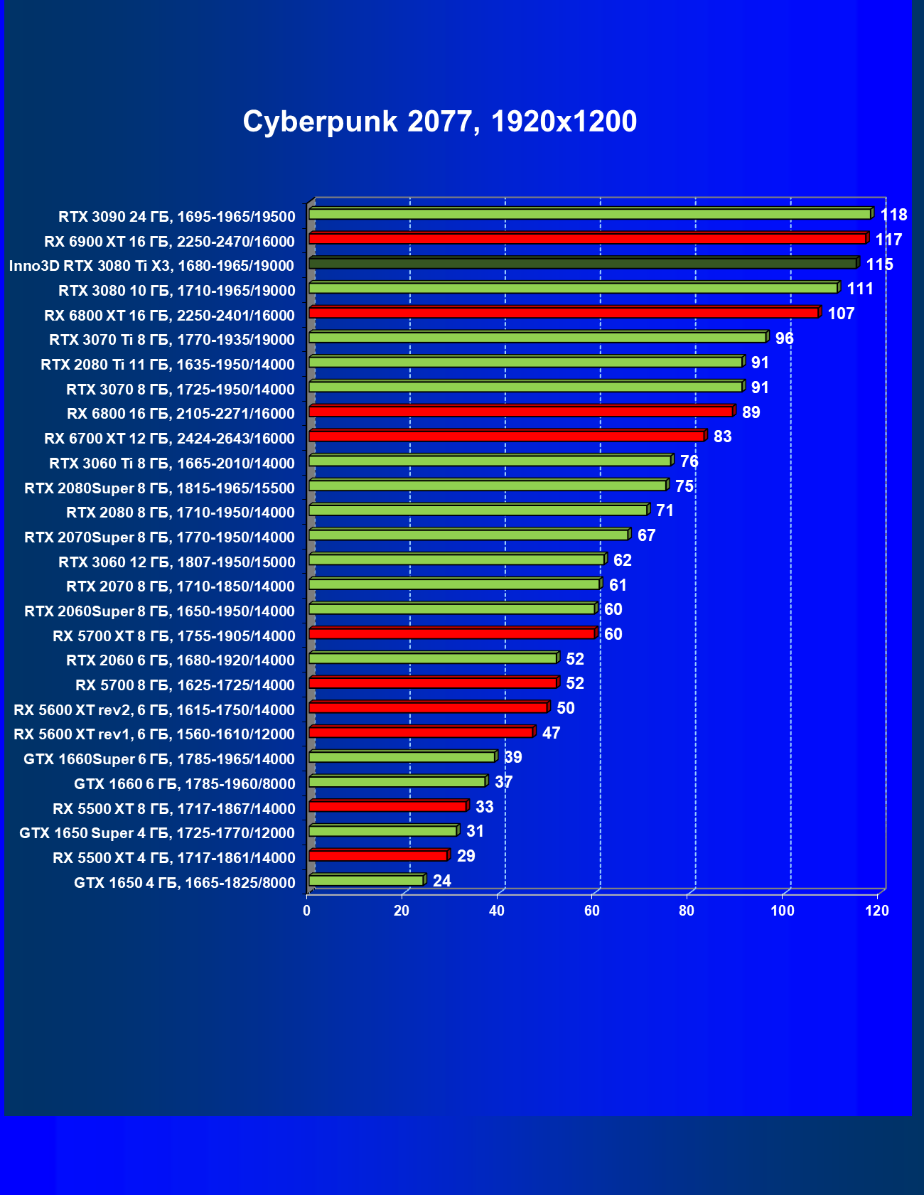 | 09 | Inno3D RTX 3080 Ti X3, 1680—1965/19000 | 130 | 1818 | 140 000 |