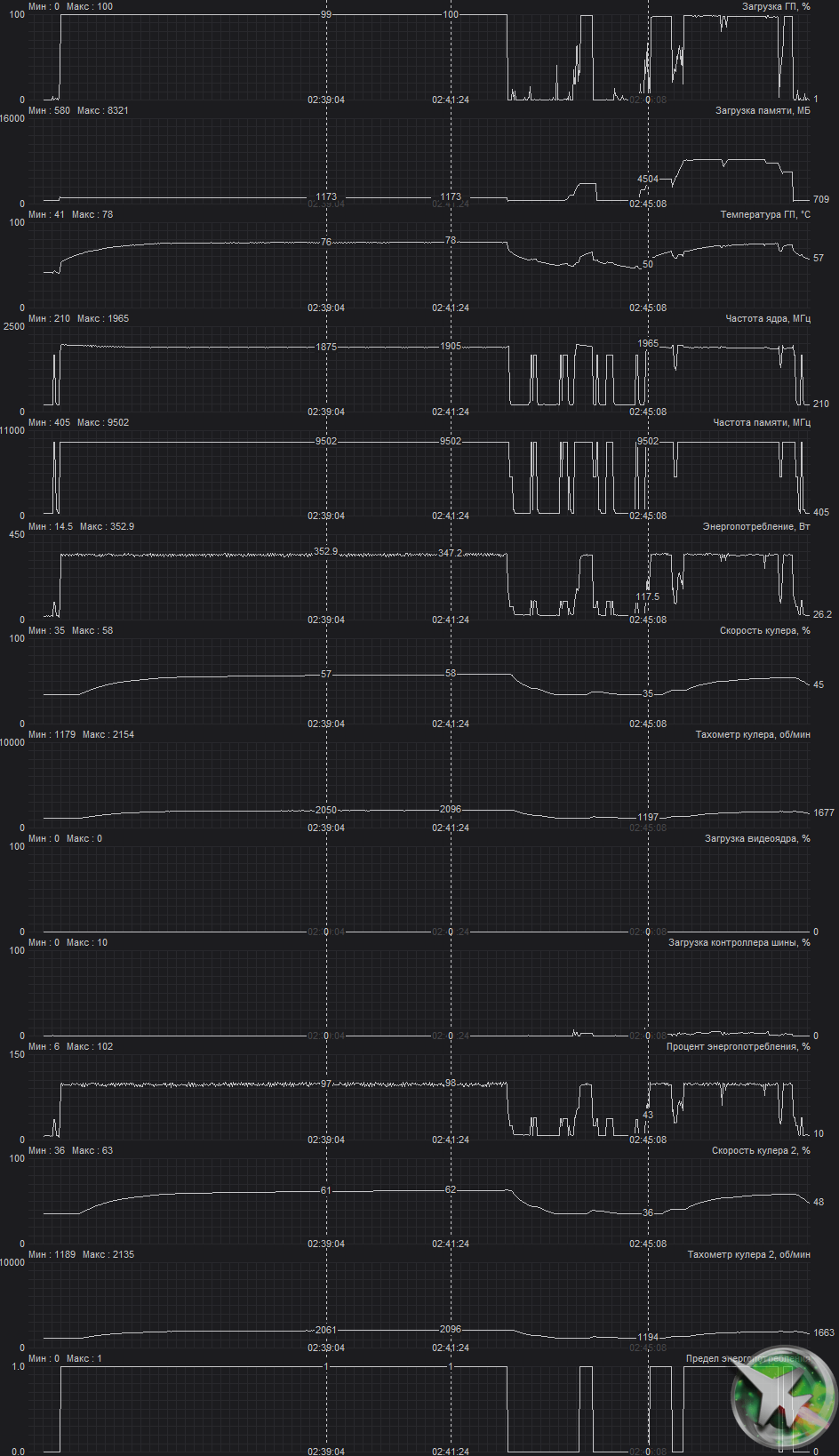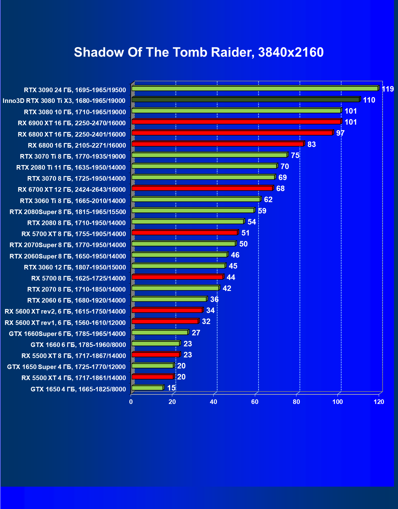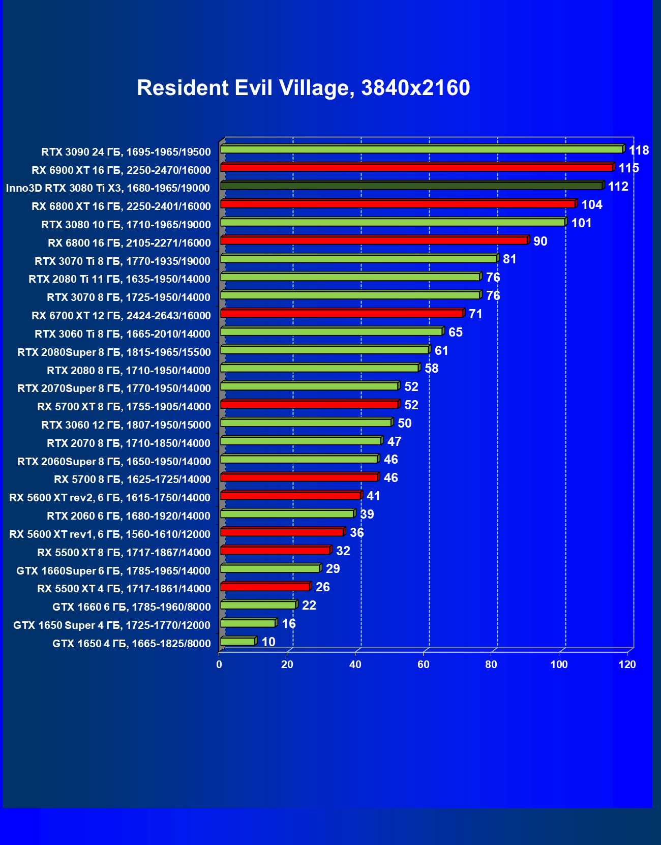 | 09 | Inno3D RTX 3080 Ti X3, 1680—1965/19000 | 130 | 1818 | 140 000 |