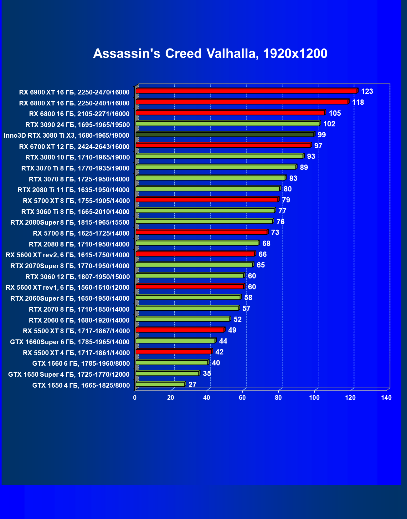 | 08 | RX 6800 XT 16 ГБ, 2015—2401/16000 | 134 | 1651 | 124 000 |