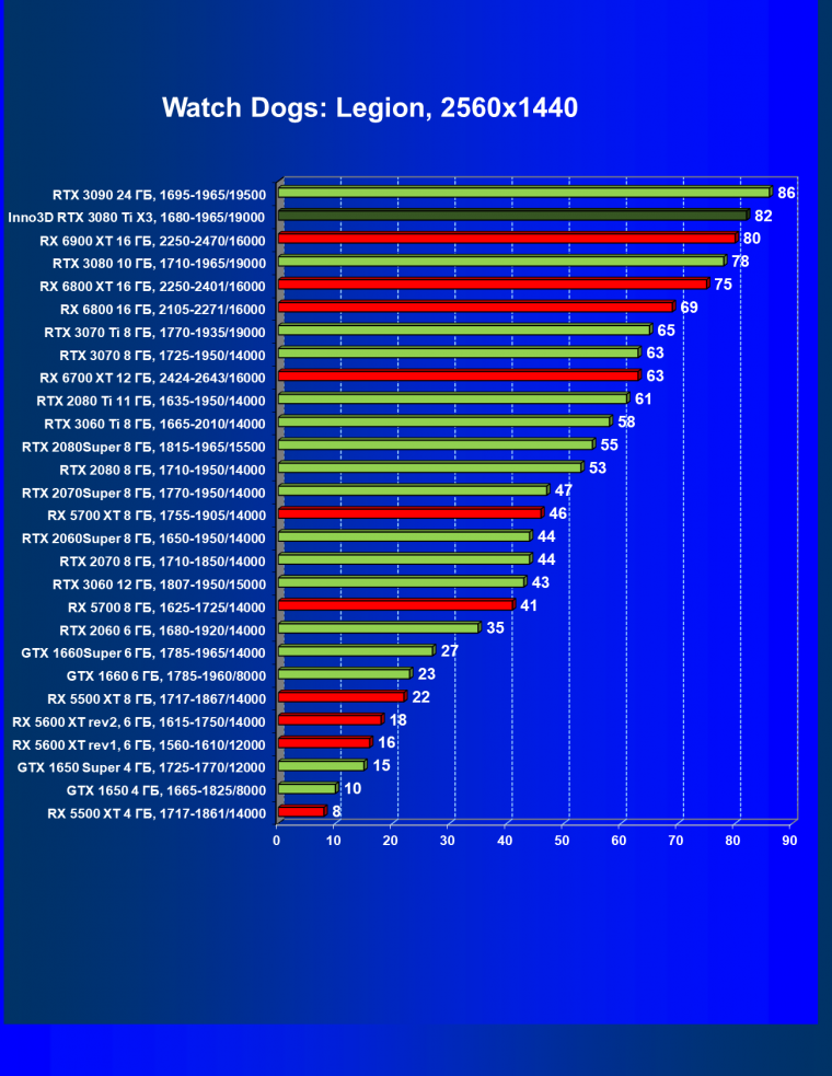 | 11 | RX 6800 XT 16 ГБ, 2015—2422/16000 | 160 | 13 | 124 000 |