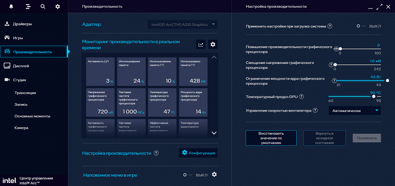 Упомянем еще раз, что карта на базе Arc A310 пригодна для классических игр в разрешении никак не выше Full HD, но в таком разрешении многие игры потребуют снизить настройки качества графики до средних или даже низких. Если игра поддерживает технологии масштабирования Intel XeSS или AMD FSR, то их включение крайне рекомендуется. Поддержка трассировки лучей в случае Arc A310 является чисто формальной, производительности ускорителя не хватит для ее практического применения.