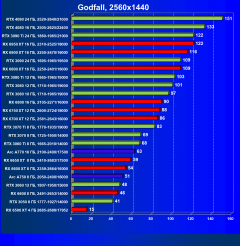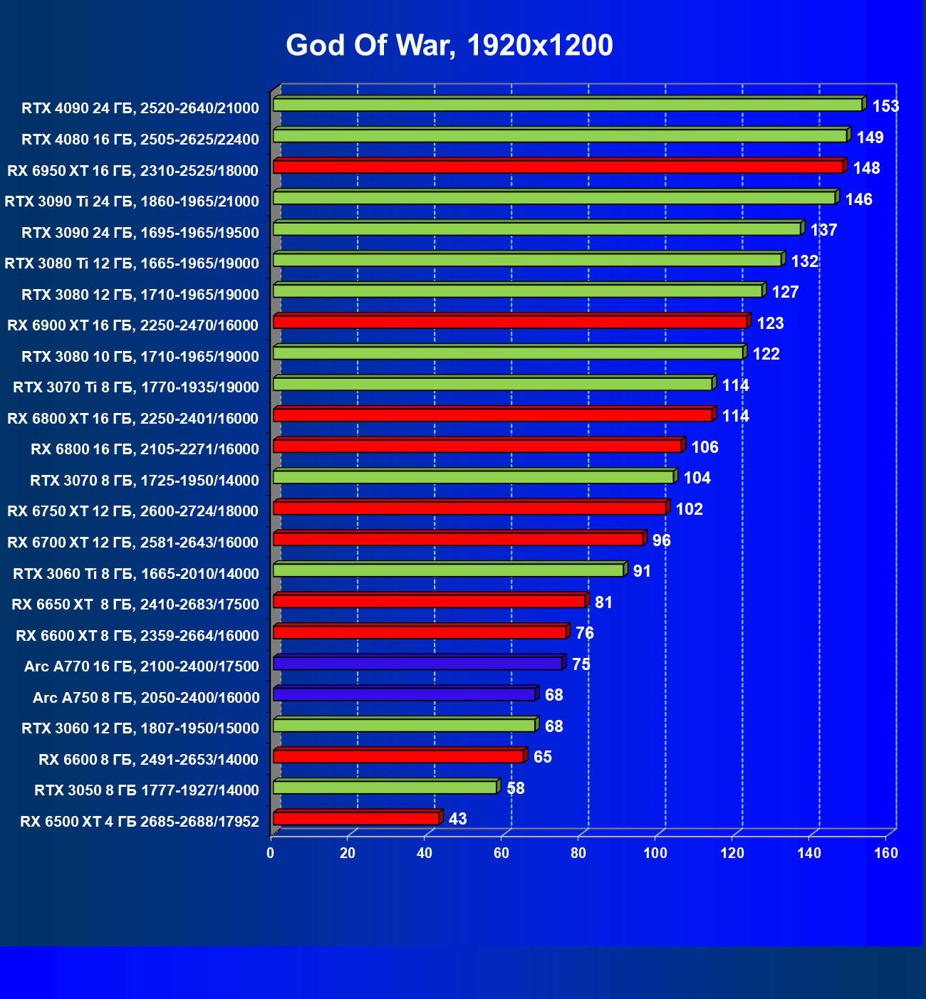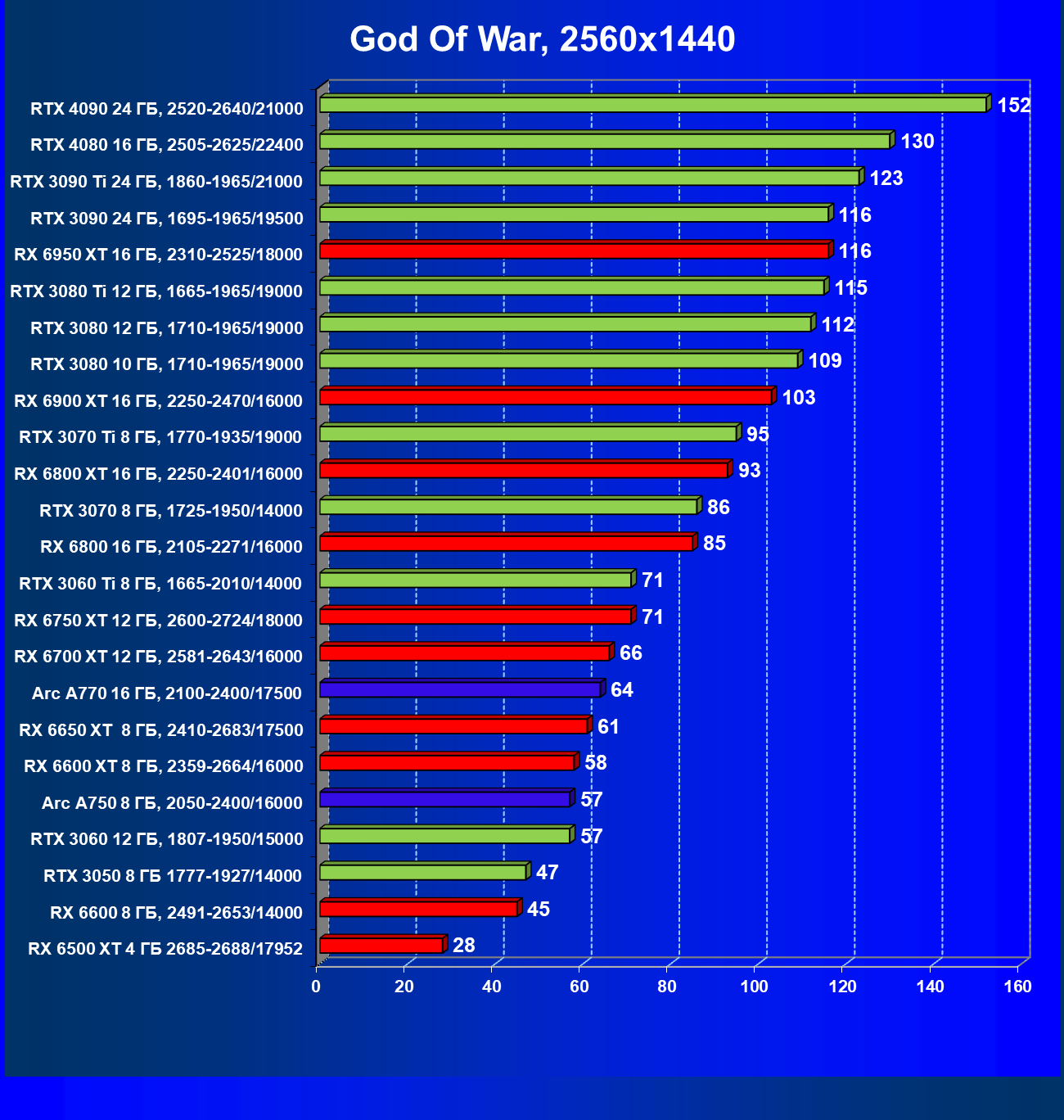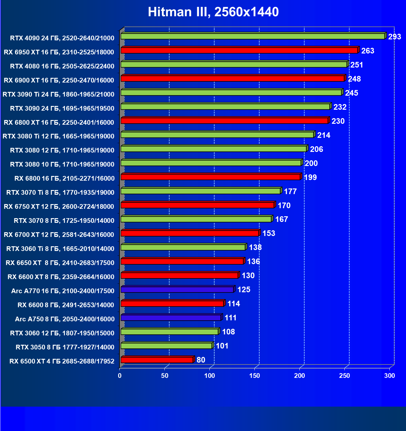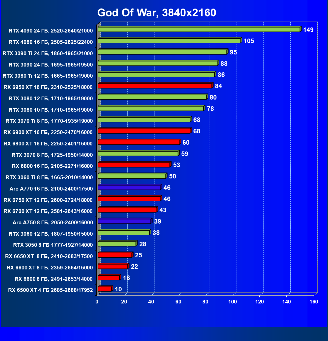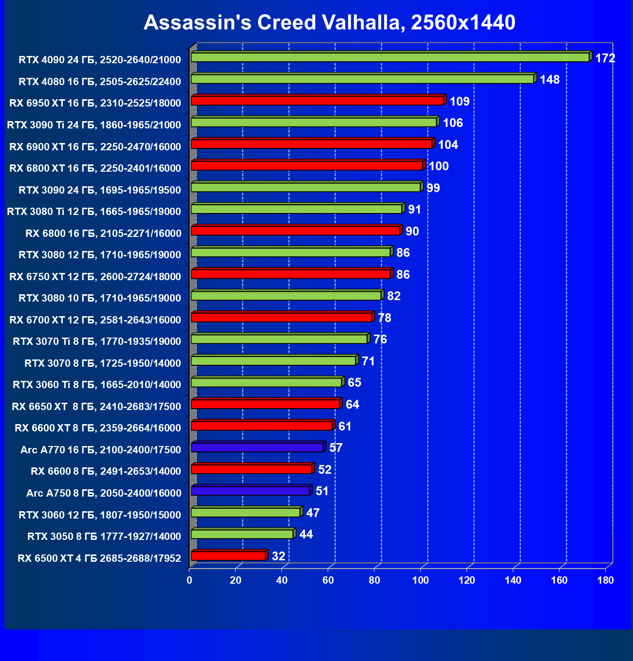 | 13 | Arc A770 16 ГБ, 2100—2400/17500 | 69 | 243 | 35 000 |