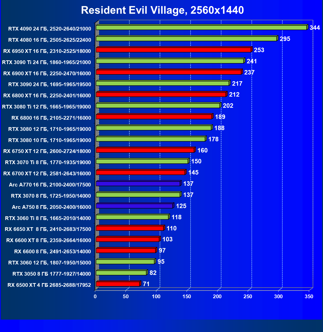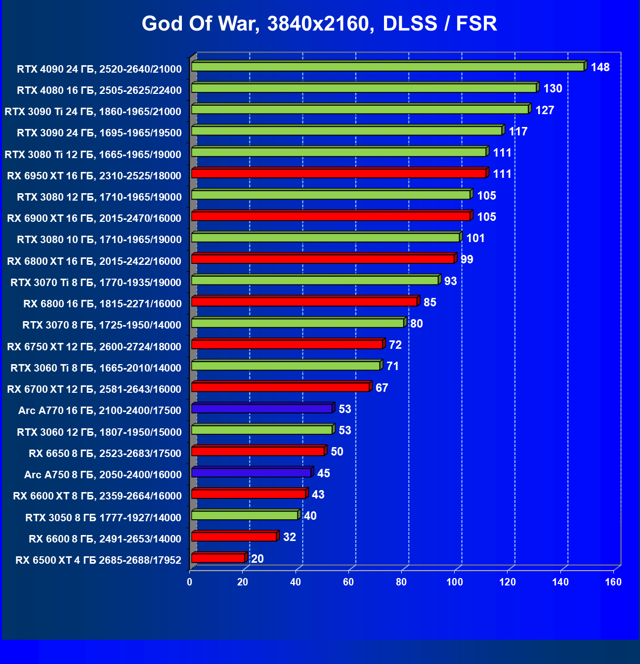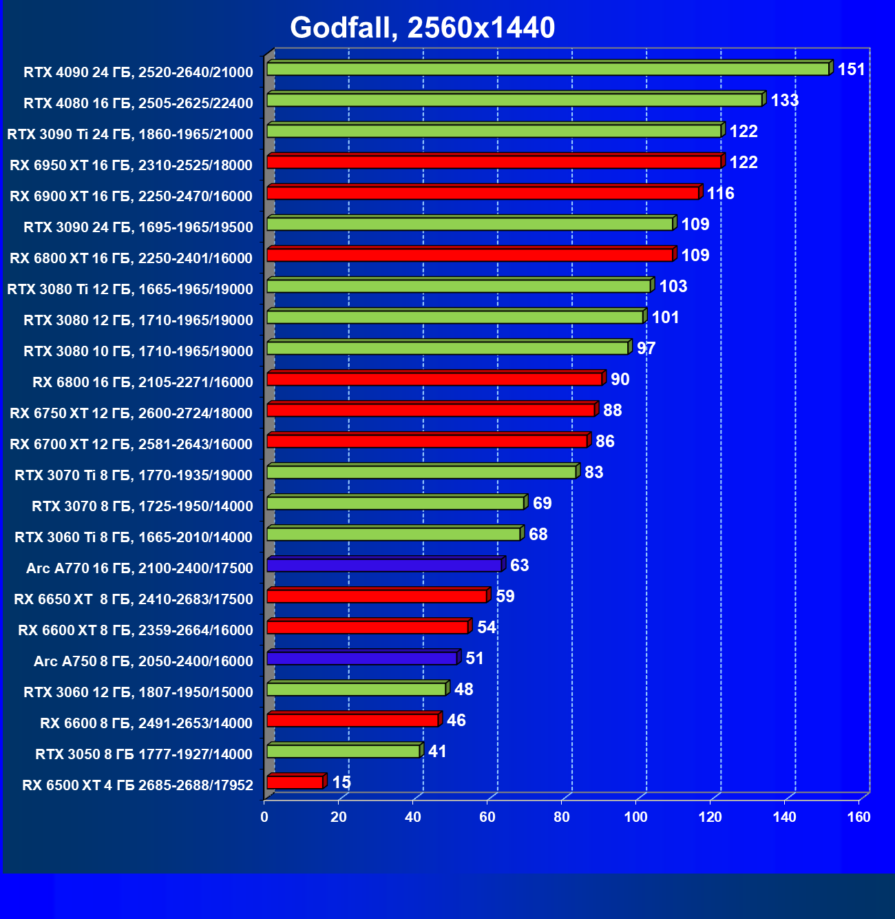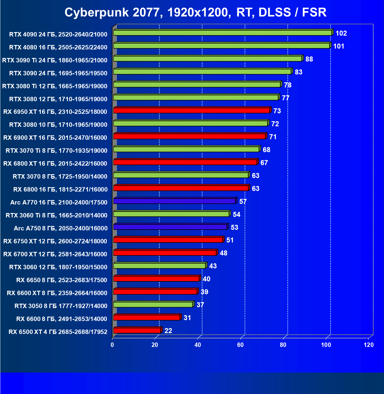 | 10 | Arc A770 16 ГБ, 2100—2400/17500 | 111 | 388 | 35 000 |