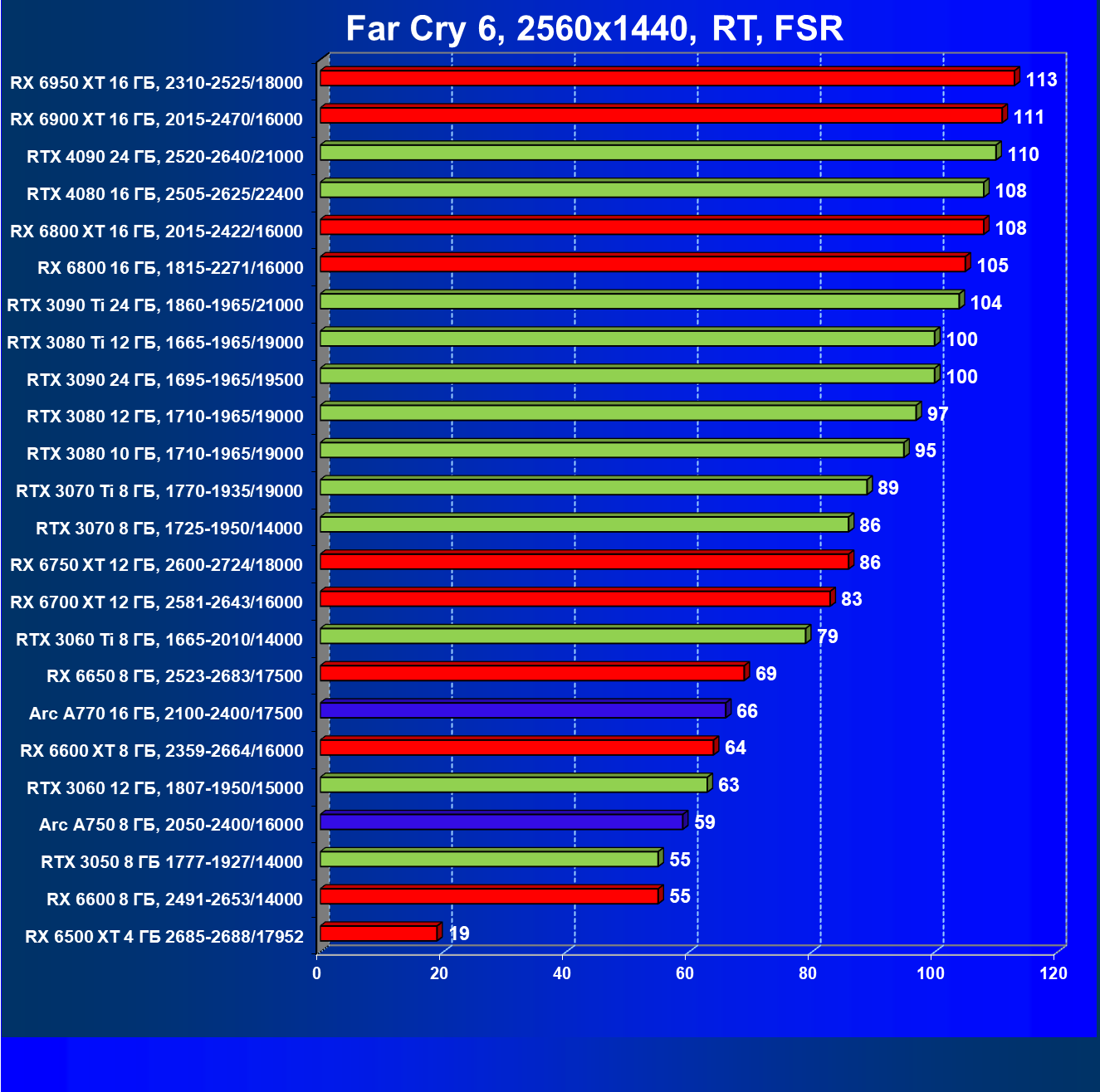 Собственно, и в разрешении 2.5K новинка обеспечит приличный комфорт даже с RT+FSR, но тут уже точно не во всех играх.