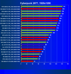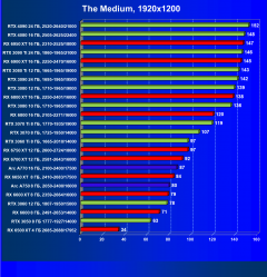 | 15 | RX 6700 XT 12 ГБ, 2581—2643/16000 | 291 | 82 | 35 600 |