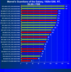 Результаты тестов со включенной аппаратной трассировкой лучей и/или DLSS/FSR/XeSS в разрешениях 1920×1200, 2560×1440 и 3840×2160