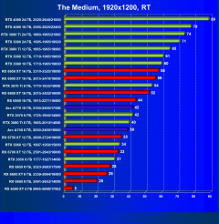 Здесь выводы в целом те же, но из-за более тяжелого «переваривания» трассировки лучей картами AMD старшая карта Intel новой линейки смотрится поинтереснее.