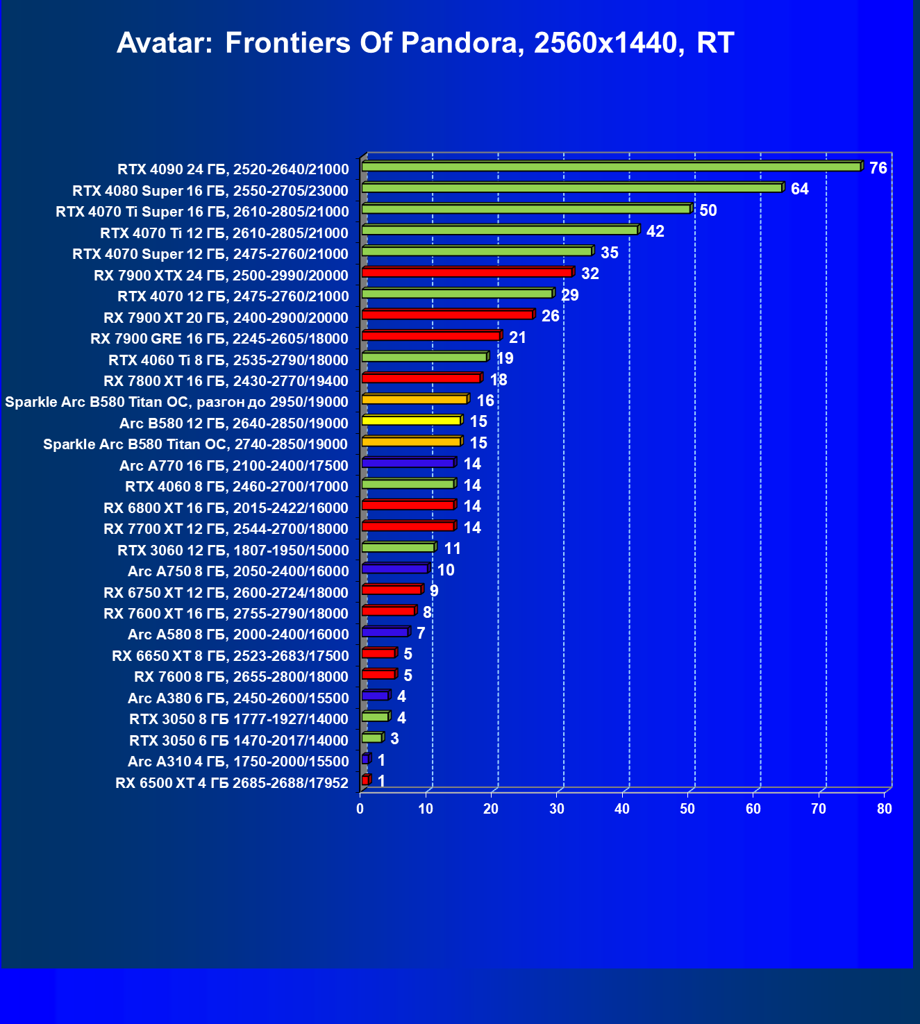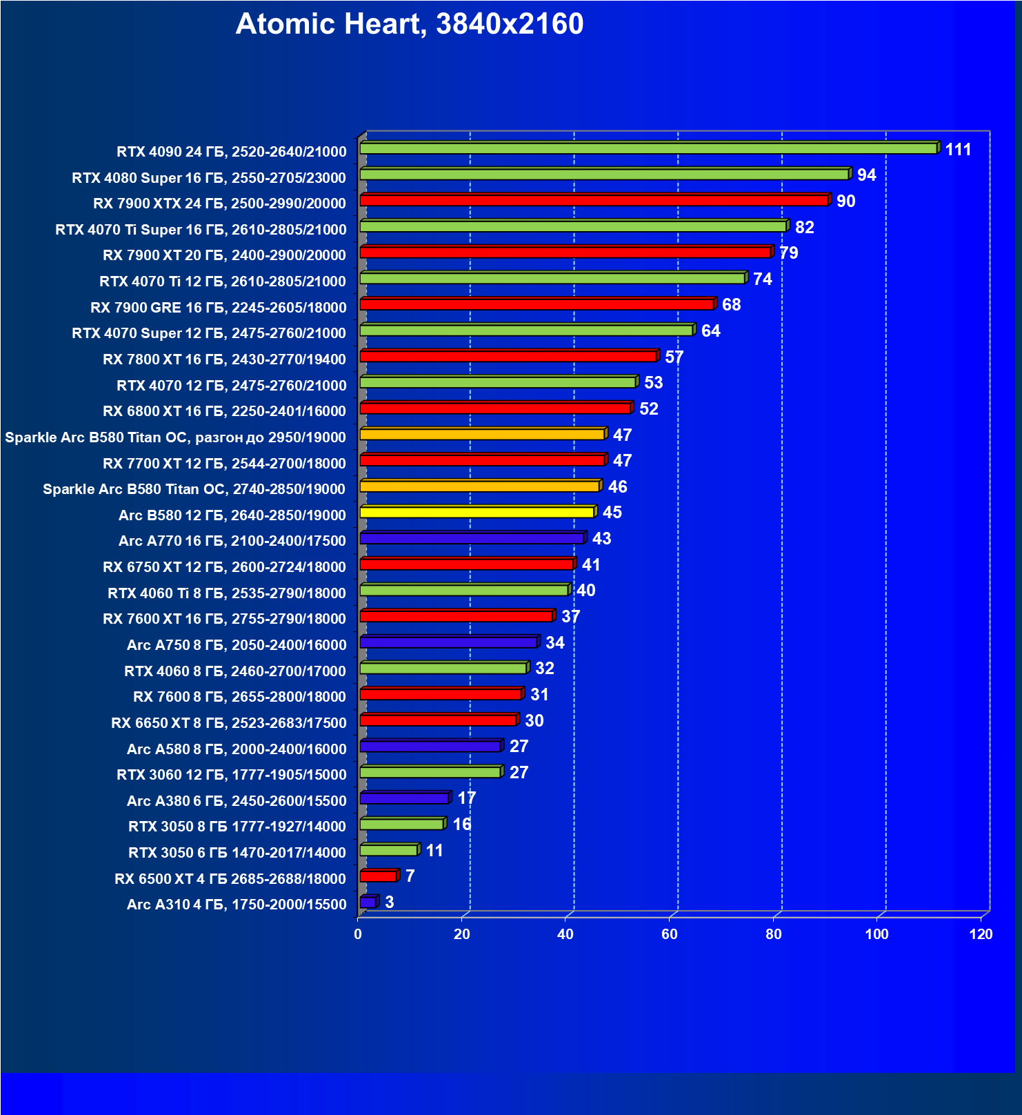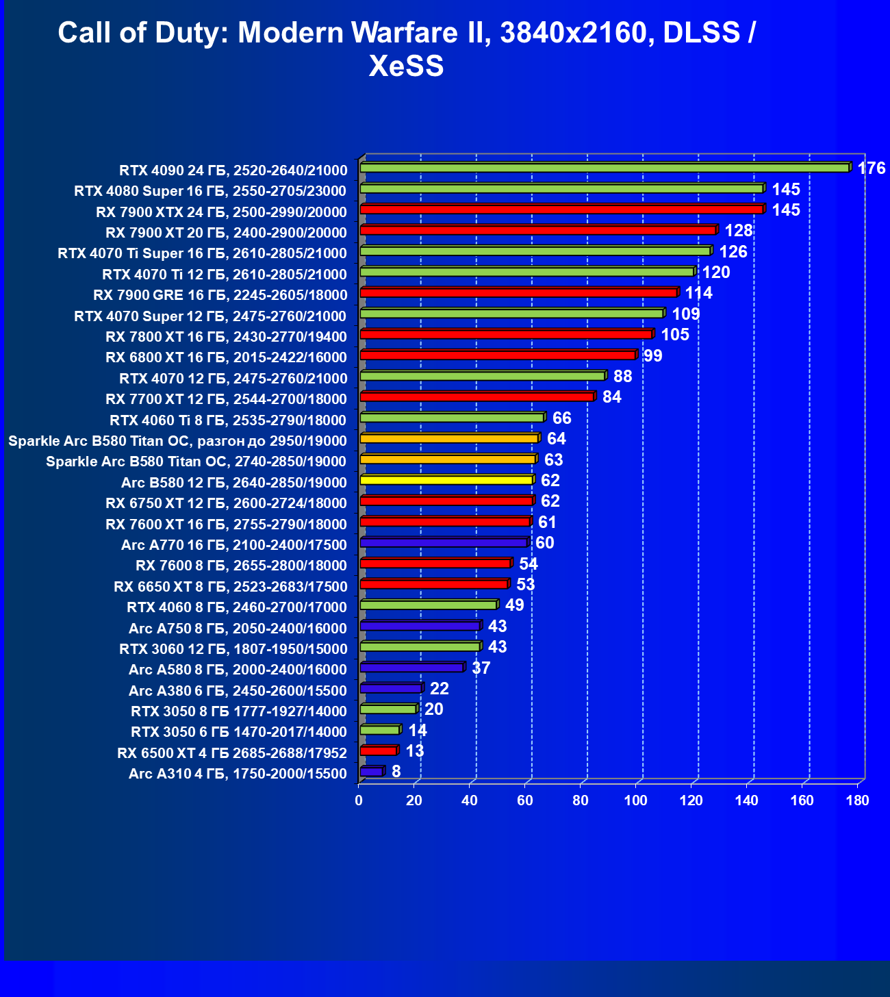 | 13 | Sparkle Arc B580 Titan OC, 2740—2850/19000 | 179 | 893 | 50 000 |