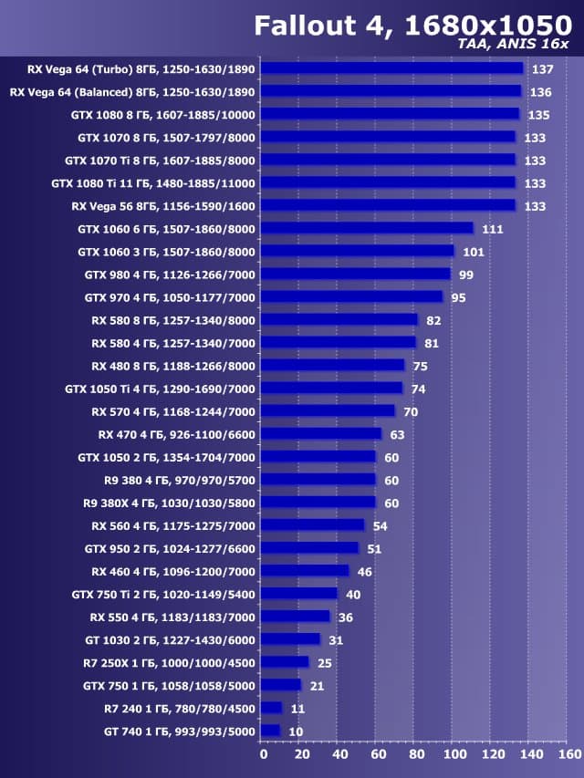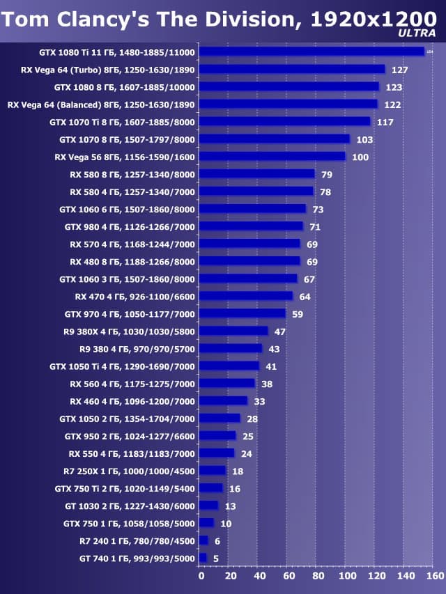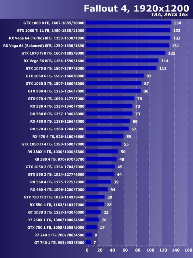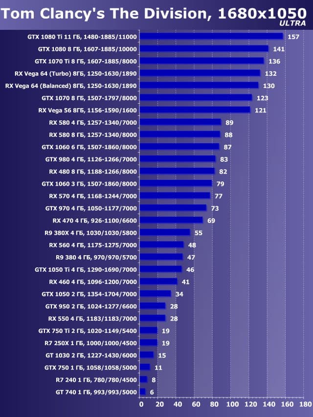 | 14 | GTX 1060 3 ГБ, 1507—1860/8000 | 1040 | 650 | 16 000 |