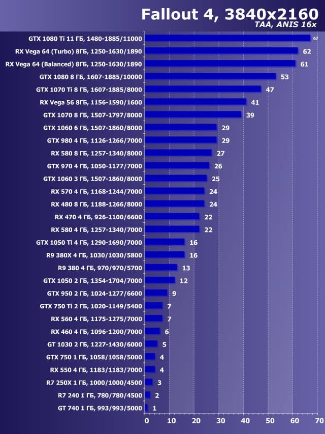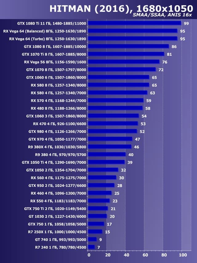 Этот рейтинг дает понимание, как выглядят все ускорители относительно младшего GeForce GT 740, который взят за единицу (за 100%). Мы приводим в рейтинге возможностей не абсолютные значения, а показатели карт относительно GT 740.