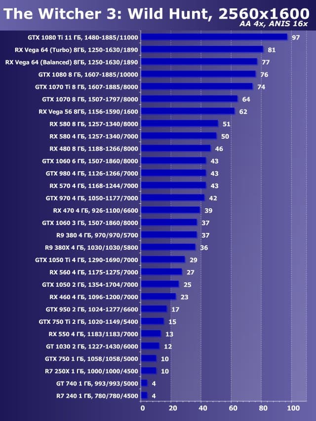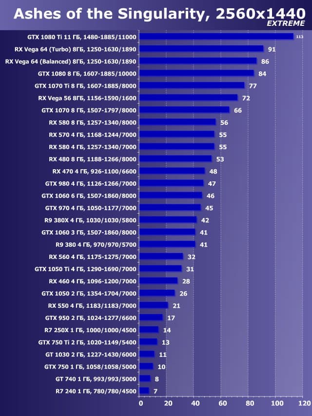 | 14 | RX 580 8 ГБ, 1257—1340/8000 | 546 | 1310 | 24 000 |