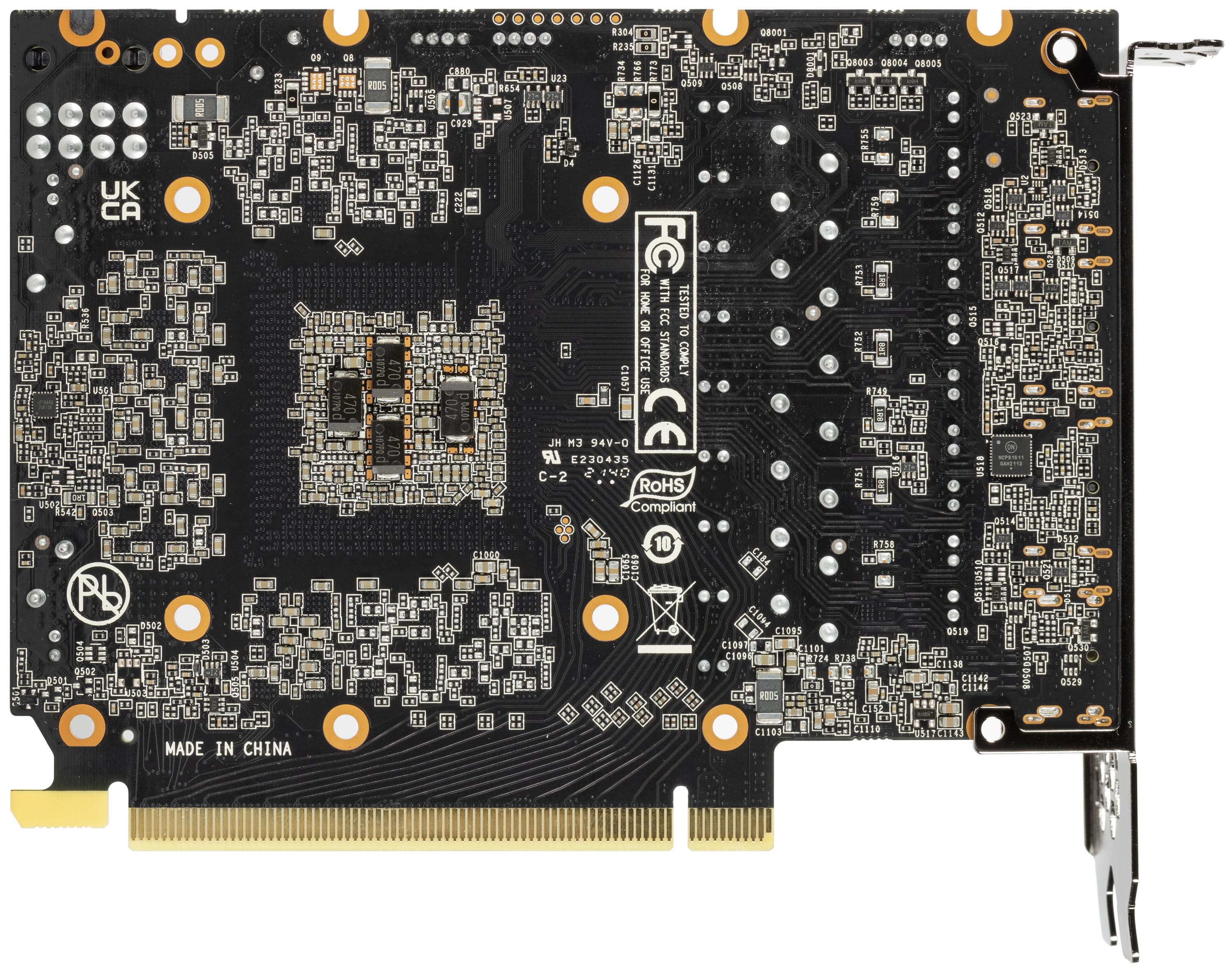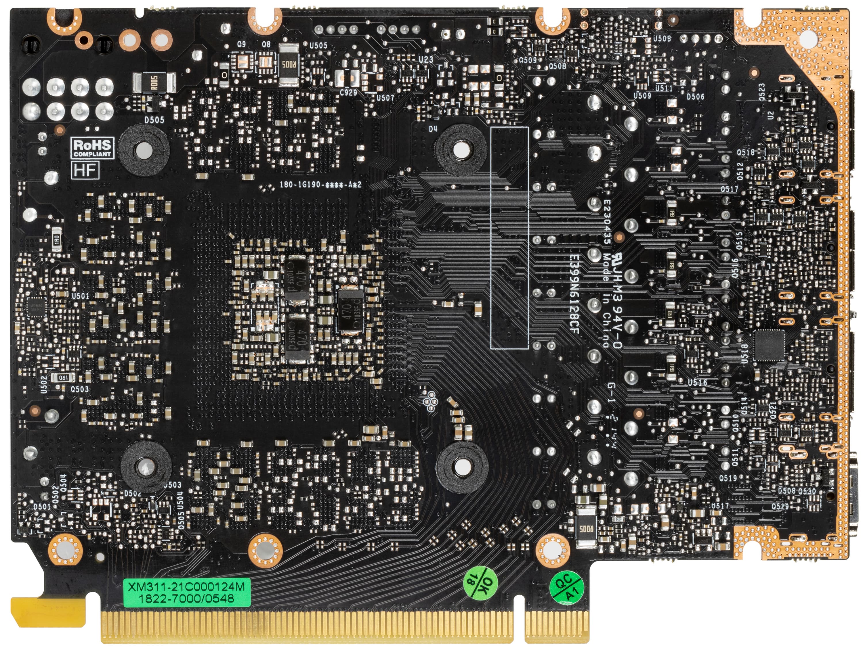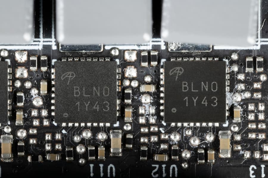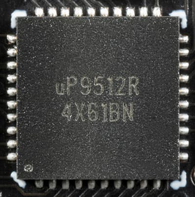 На оборотной стороне платы имеется ШИМ-контроллер uP9512R (uPI Semiconductor), который управляет четырехфазной схемой питания графического процессора.