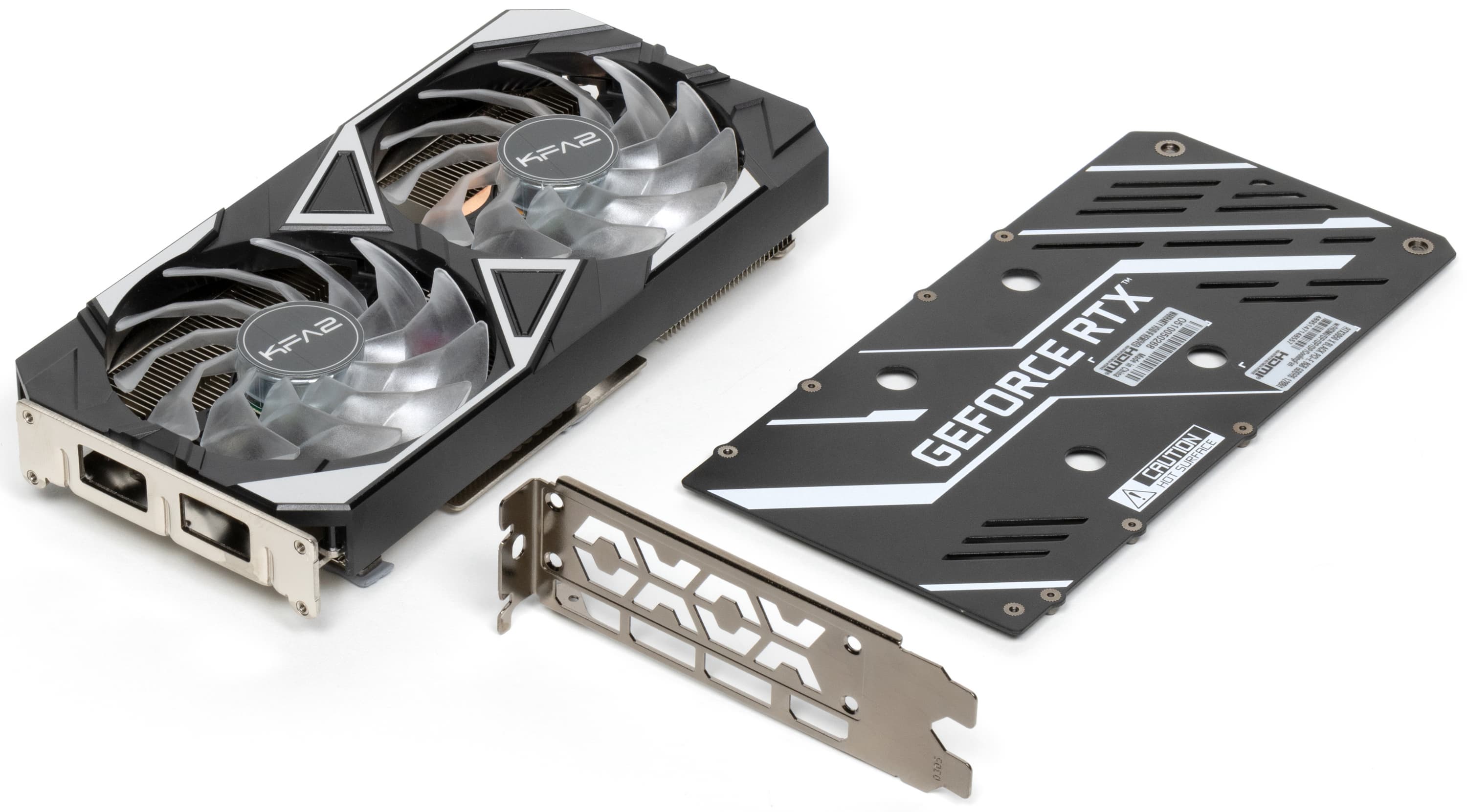 Частота работы памяти у этой карты референсная — 3500 (эффективная 14000) МГц. Диапазон частот графического процессора тоже практически совпадает с референсными значениями 1777—1927 МГц: максимум у карты KFA2 составляет 1950 МГц, что не может обеспечить никакого прироста производительности.