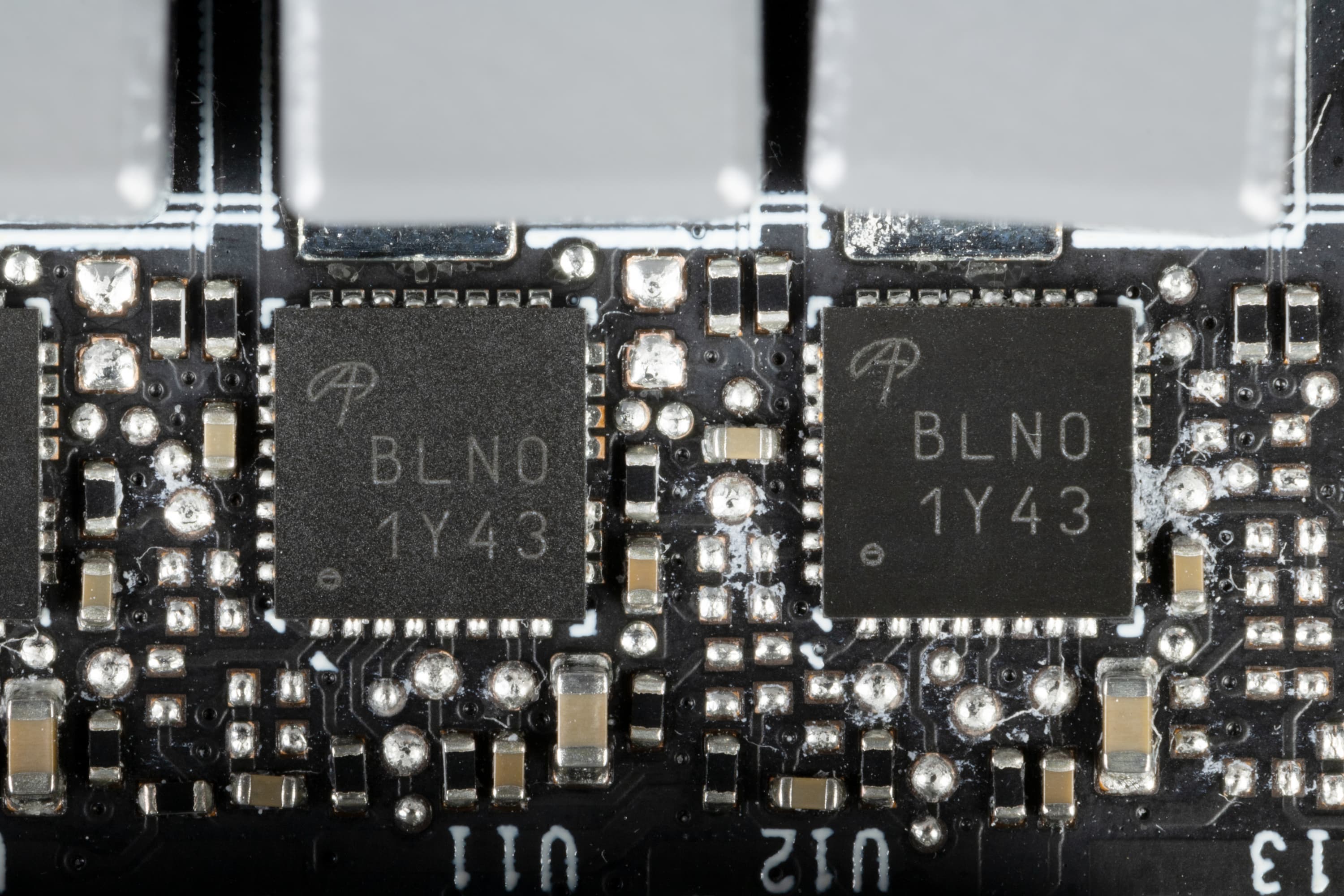 Фазы питания ядра и питания памяти укомплектованы — мосфетами AOZ5332QI (Alpha&Omega).