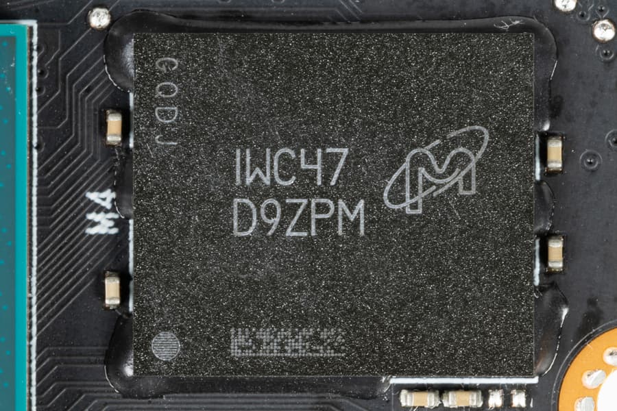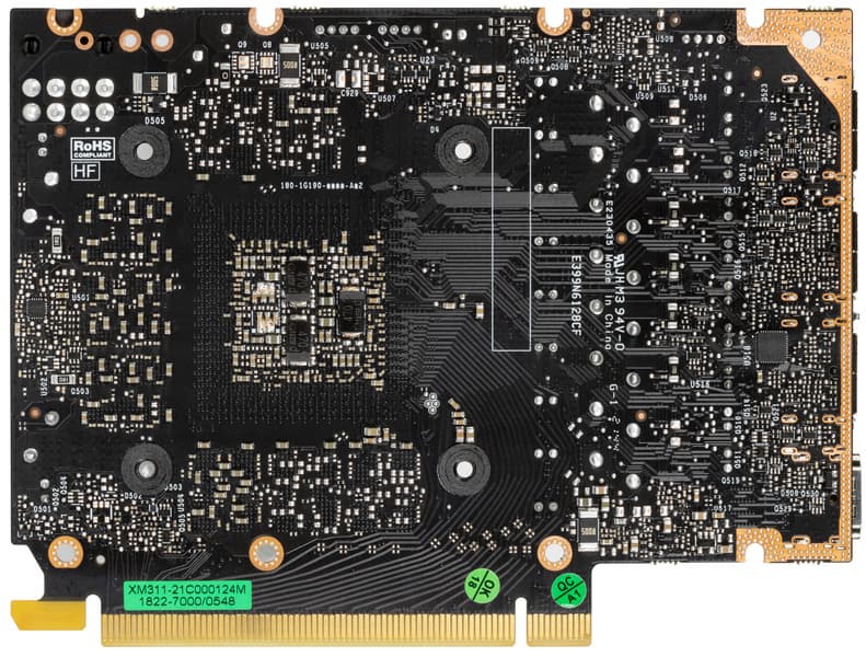 Карта имеет 8 ГБ памяти GDDR6 SDRAM, размещенной в 4 микросхемах по 16 Гбит на лицевой стороне PCB. Микросхемы памяти Micron (GDDR6, D9ZPM) рассчитаны на условную номинальную частоту работы в 3500 (14000) МГц.