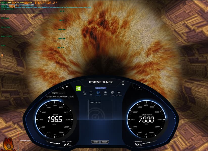 В итоге работа OC Scanner тоже не принесла никакого серьезного повышения частоты, и описанный выше ручной разгон нам пришлось выполнить через утилиту MSI Afterburner.