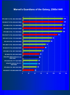 Стандартные результаты тестов без использования аппаратной трассировки лучей в разрешениях 1920×1200, 2560×1440 и 3840×2160