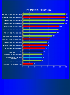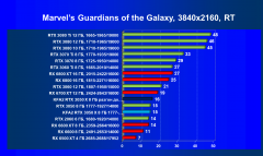 Рейтинг составлен по 9 тестам с применением технологии трассировки лучей (с Nvidia DLSS и с AMD FSR в играх God of War, The Medium и Far Cry 6).