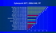 Результаты тестов со включенной аппаратной трассировкой лучей и/или DLSS / FSR в разрешениях 1920×1200, 2560×1440 и 3840×2160