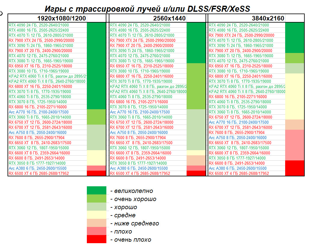 - Вариант рейтинга iXBT.com с включением RT/DLSS/FSR/XeSS