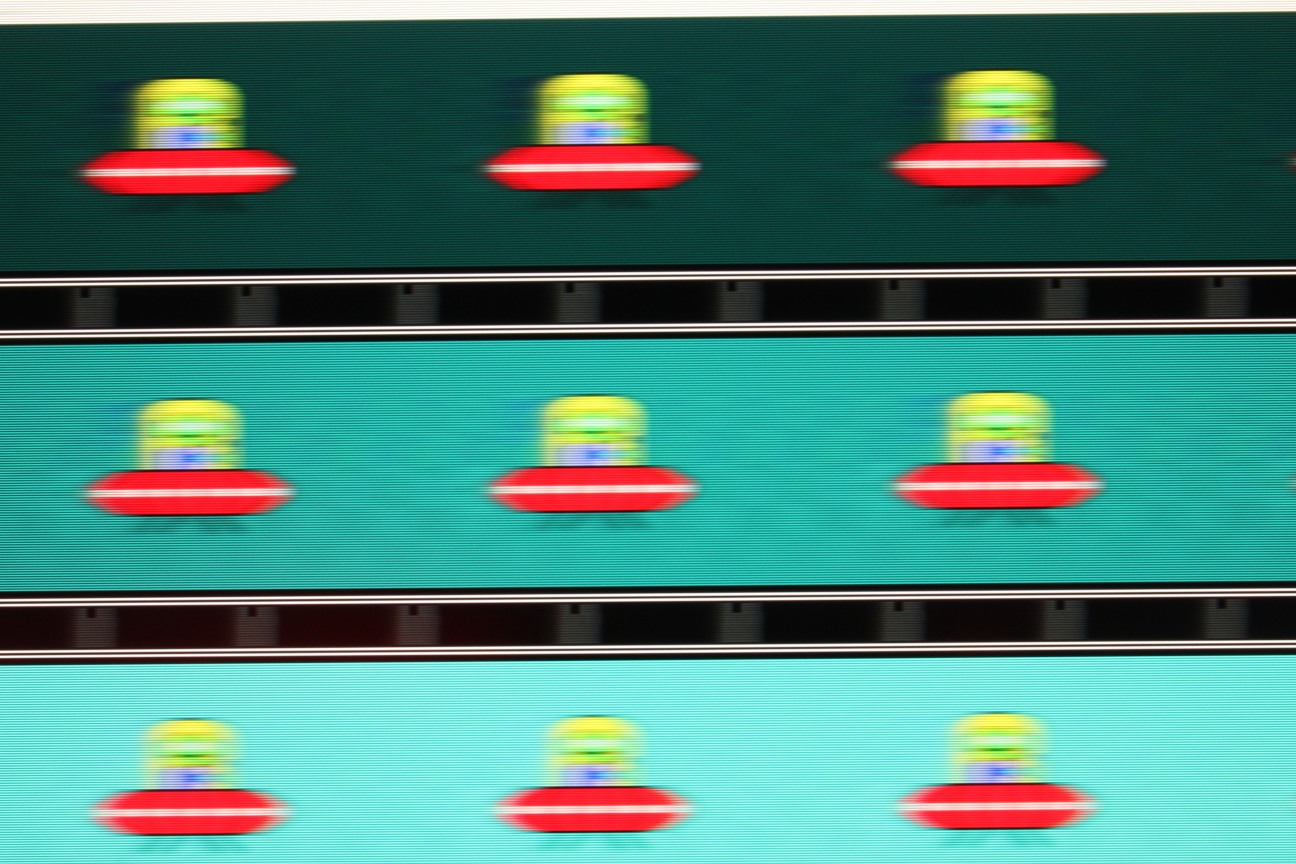 Видно, что при прочих равных условиях четкость изображения зависит от степени разгона, но на максимальном разгоне артефакты уже заметные (шлейф позади тарелки).