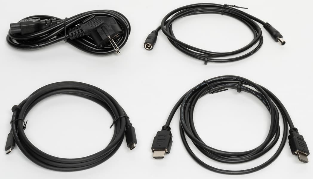 Все комплектные кабели черного цвета. Приятно, что кабели HDMI и USB с разъемами USB тип C относительно длинные — 1,8 м.