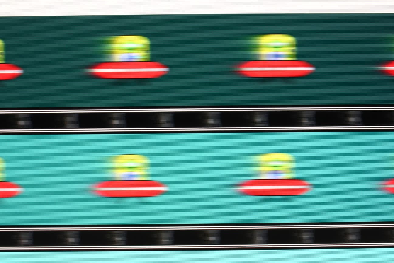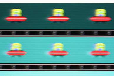 Для наглядного представления о том, что на практике означает такая скорость матрицы и к каким артефактам приводит разгон, приведем серию снимков, полученных с помощью движущейся камеры. Такие снимки показывают, что видит человек, если он следит глазами за двигающимся на экране объектом. Описание теста приведено тут, страница с самим тестом тут. Использовались рекомендованные установки (скорость движения 960 пиксель/с), выдержка 1/15 с, под фотографиями указаны значение настройки Время отклика.