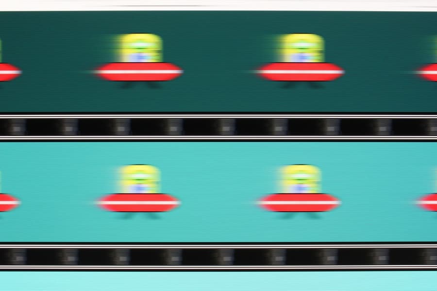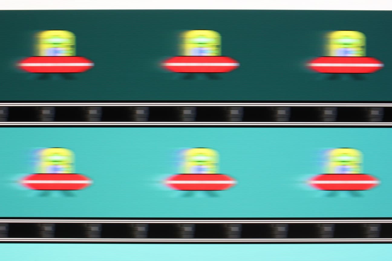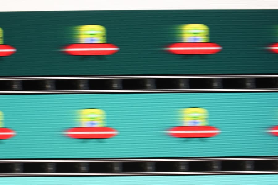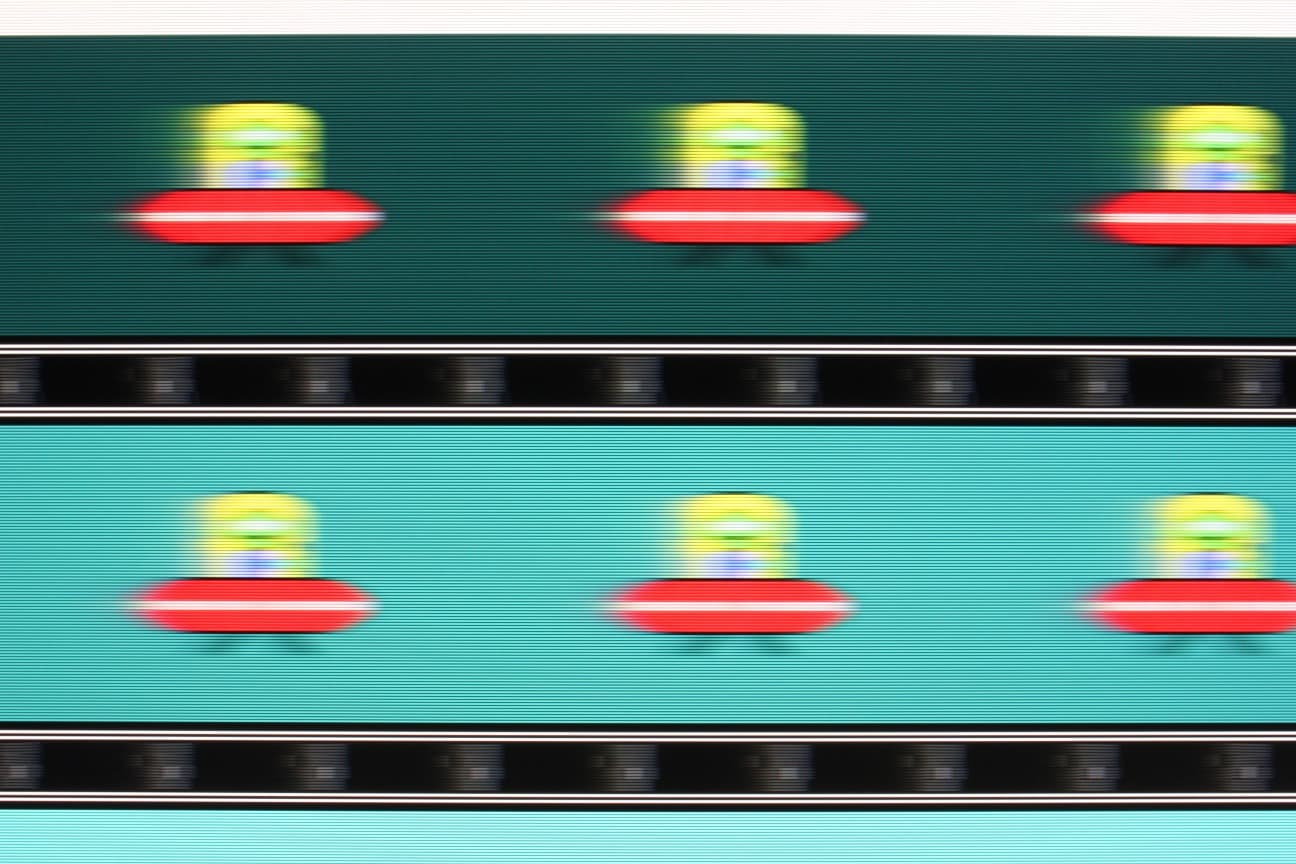 Видно, что при прочих равных условиях четкость изображения зависит от степени разгона, но на максимальном разгоне артефакты уже заметные (светлый след позади тарелки).