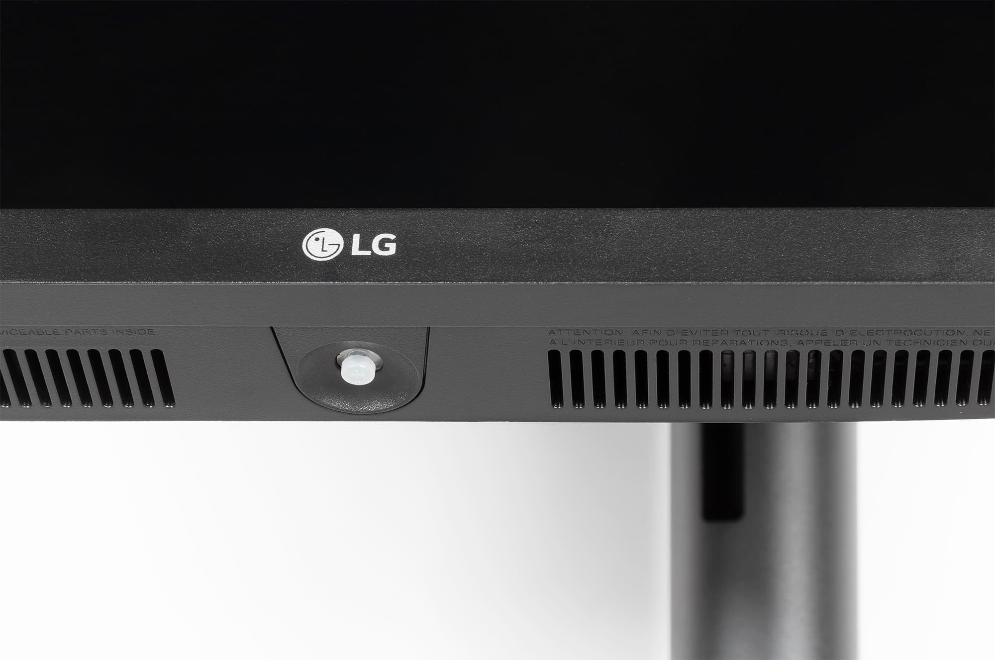 Панели корпуса блока экрана, а также кожухи подставки изготовлены из черного пластика в основном с матовой поверхностью. Но встречаются и глянцевые участки — логотип на задней панели. А один из кожухов крепежной площадки блока экрана изготовлен из пластика с серебристым покрытием. Внешняя поверхность матрицы черная, полуматовая, зеркальность выражена. Экран выглядит как монолитная поверхность, ограниченная снизу пластиковой планкой, а сверху и с боков — узкой пластиковой окантовкой. Выведя изображение на экран, можно увидеть, что на самом деле между внешними границами экрана и собственно областью отображения есть неширокие поля — по 8 мм до торцов блока экрана сверху и по бокам и 2 мм до планки снизу. По центру нижней планки серебристой краской нанесен логотип производителя. Органом управления и индикации режимов служит небольшой пятипозиционный (отклонение по четырем направлениям и нажатие) джойстик из матового полупрозрачного пластика, расположенный по центру на нижнем торце блока монитора.