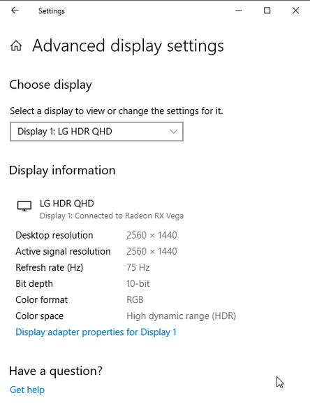При подключении к компьютеру по DisplayPort, HDMI и USB типа C поддерживалось разрешение до 2560×1440 при 75 Гц кадровой частоты на вход, и вывод изображения на экран также осуществлялся с этой частотой. При таком разрешении и частоте обновления поддерживается вывод в режиме 8 бит на цвет (кодирование RGB) в случае HDMI и 10 бит на цвет в случае DisplayPort.