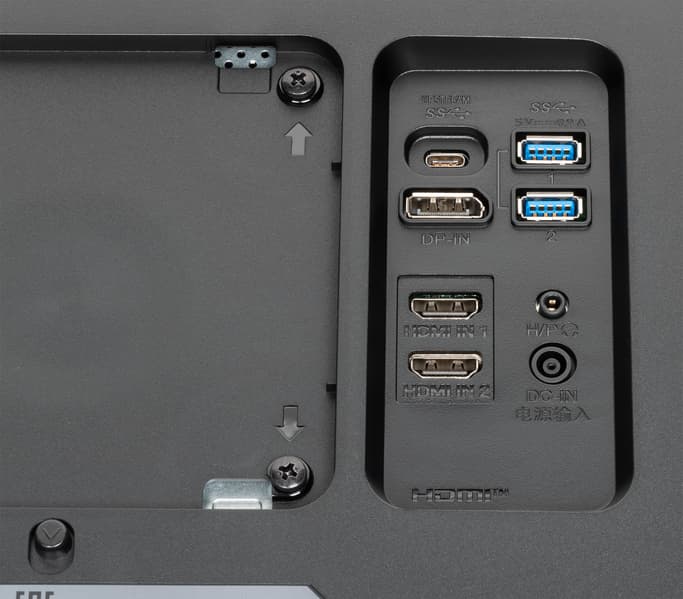 Представление об оснащенности интерфейсами дает таблица с характеристиками в начале статьи. Монитор имеет четыре цифровых входа, поддерживающих прием видеосигнала: пара HDMI и DisplayPort в полноразмерном варианте, а также USB в виде разъема USB типа C.