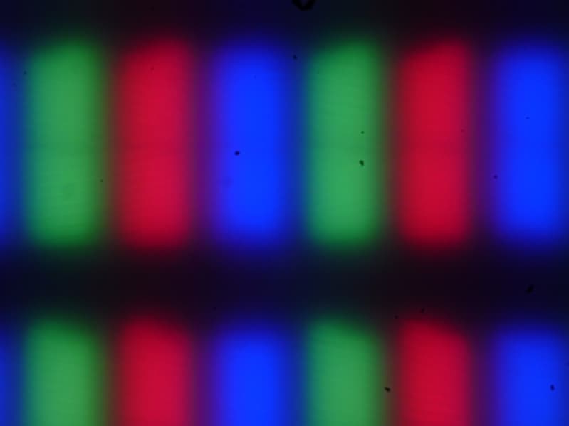 Изображение структуры пикселей из-за матовой поверхности размыто, но характерную для IPS структуру при желании распознать можно: