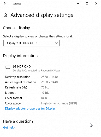 Для тестирования этого режима мы использовали официальную программу DisplayHDR test tool, которой предлагает пользоваться организация VESA для проверки соответствия устройств отображения критериям сертификатов. Результат хороший: специальный тестовый градиент показал наличие качественного 10-битного вывода, а максимальная яркость достигает значения 368 кд/м², что немало, но не больше, чем в режиме SDR.