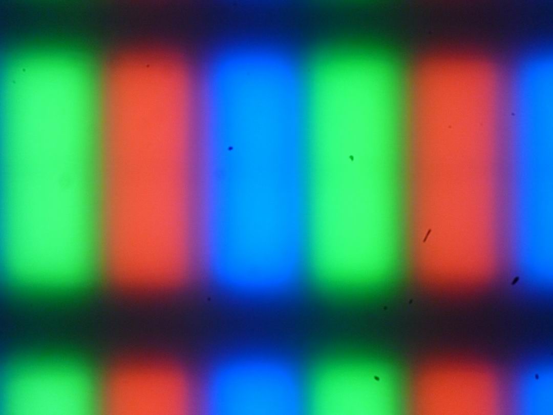 Из-за матовой поверхности экрана четкого изображения пикселей получить не удалось (черные точки — это пыль на матрице фотоаппарата):